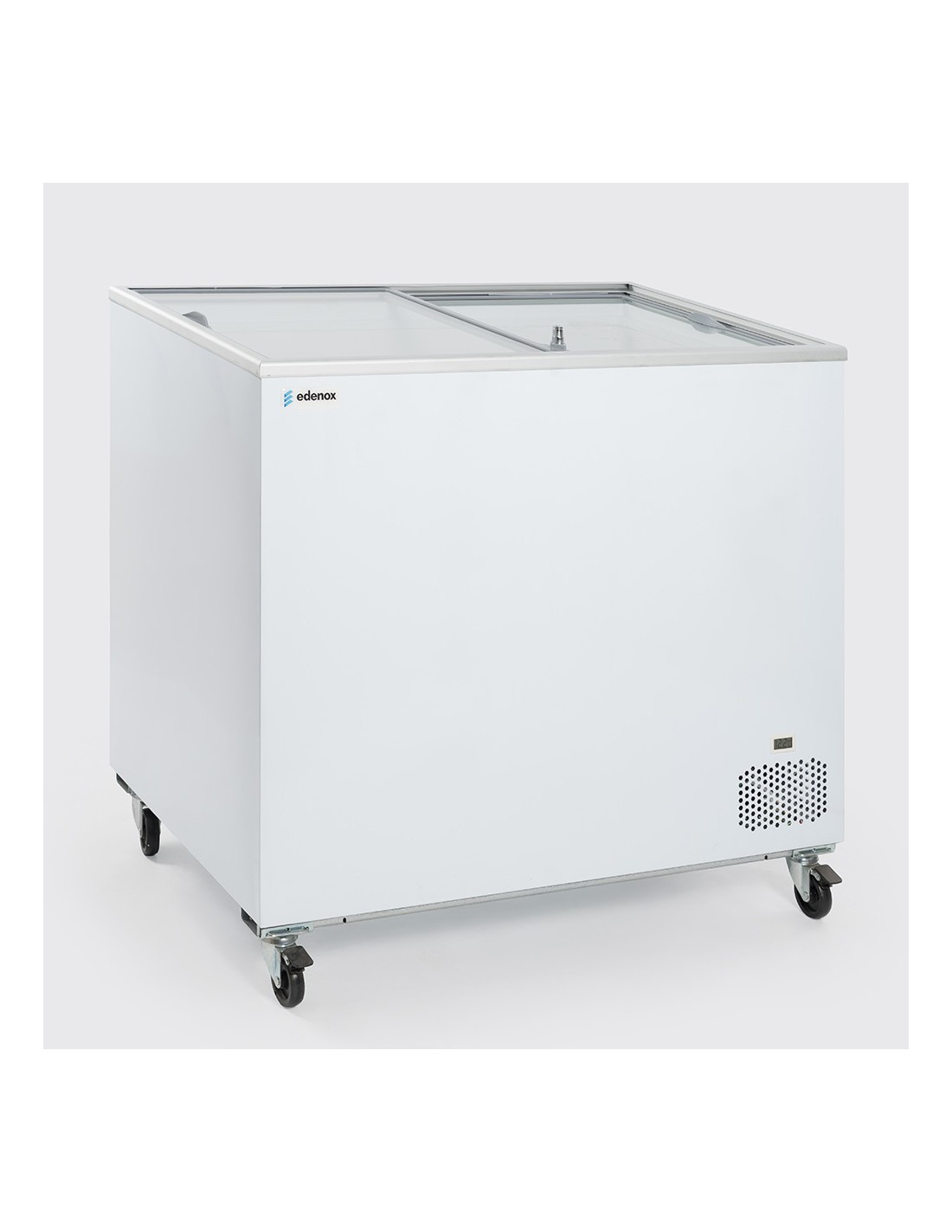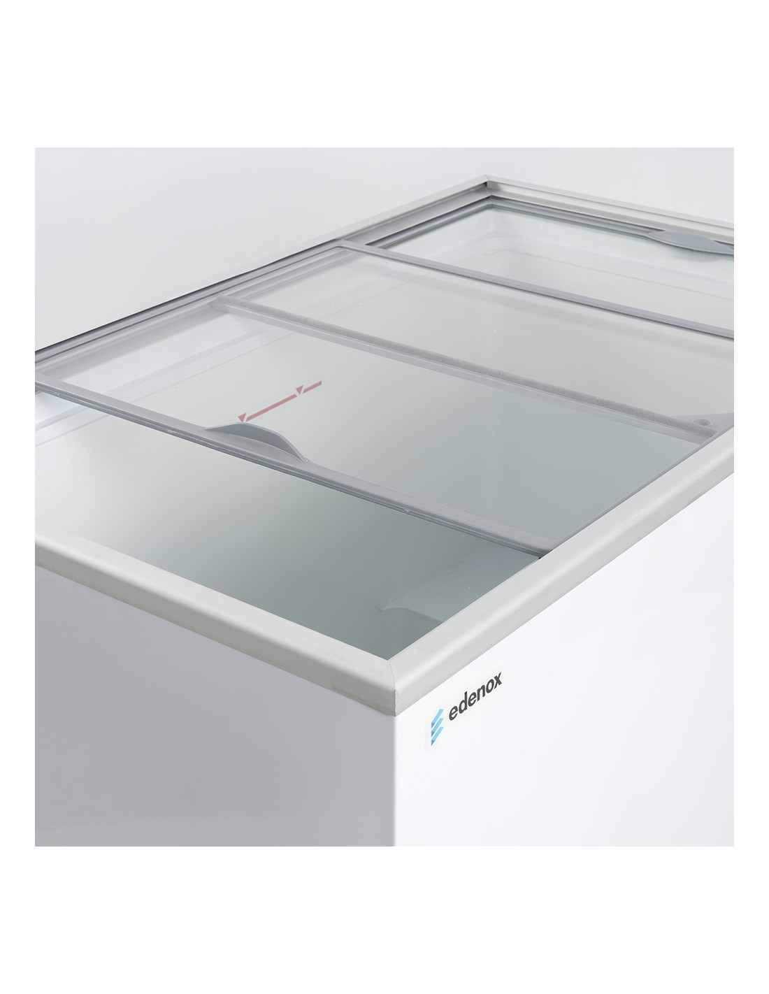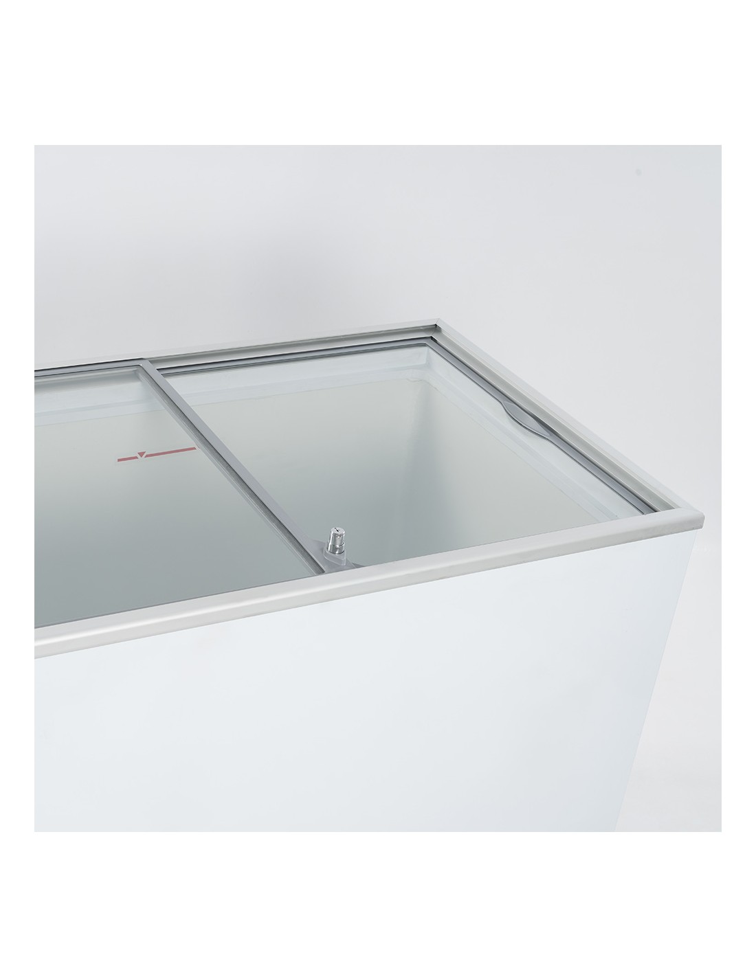 Con puertas de cristal correderas, el congelador permite una fácil visualización de su contenido, manteniendo una temperatura óptima gracias a su sistema de optimización térmica. Su estructura robusta y aislamiento en poliuretano garantizan una congelación efectiva y segura.
