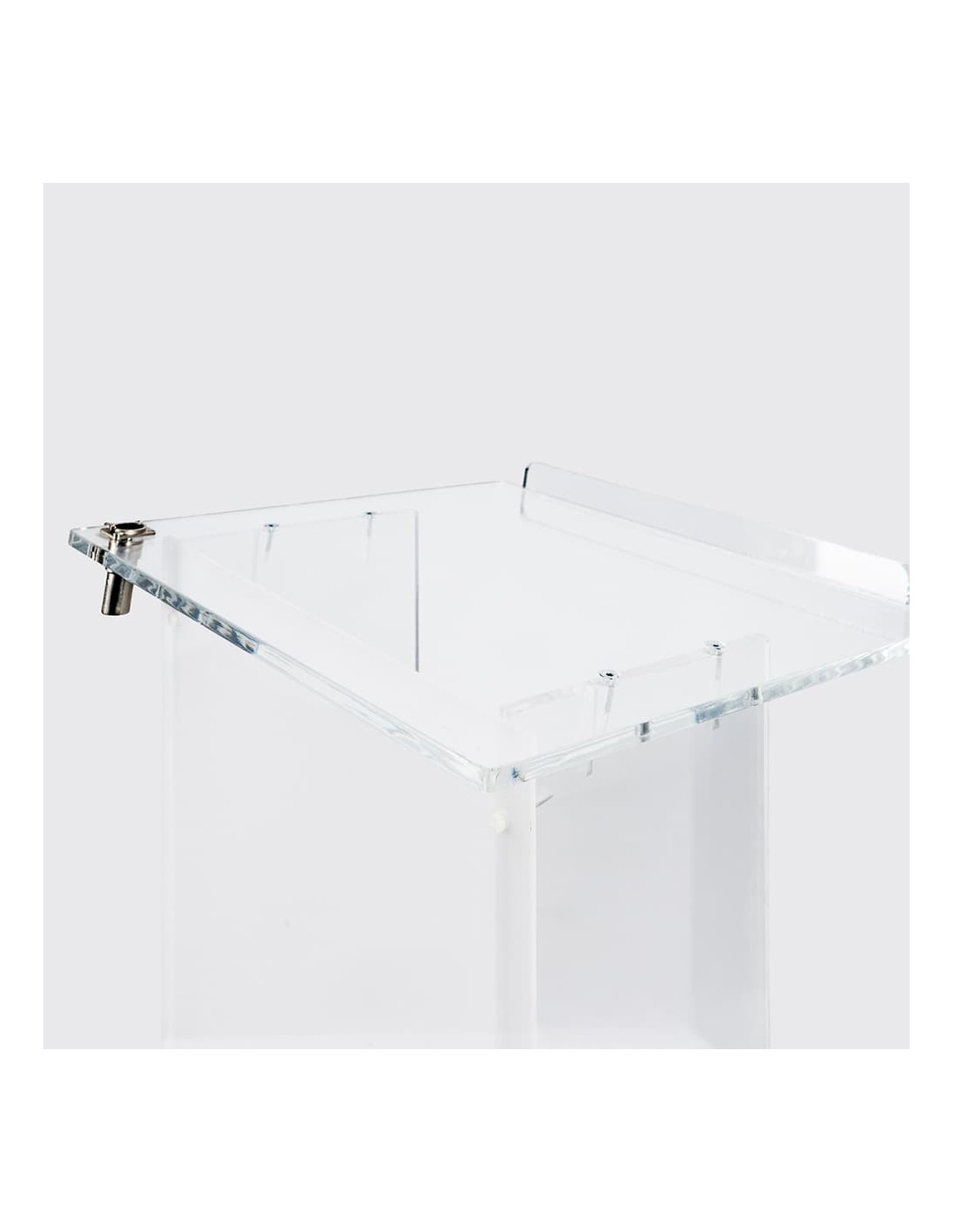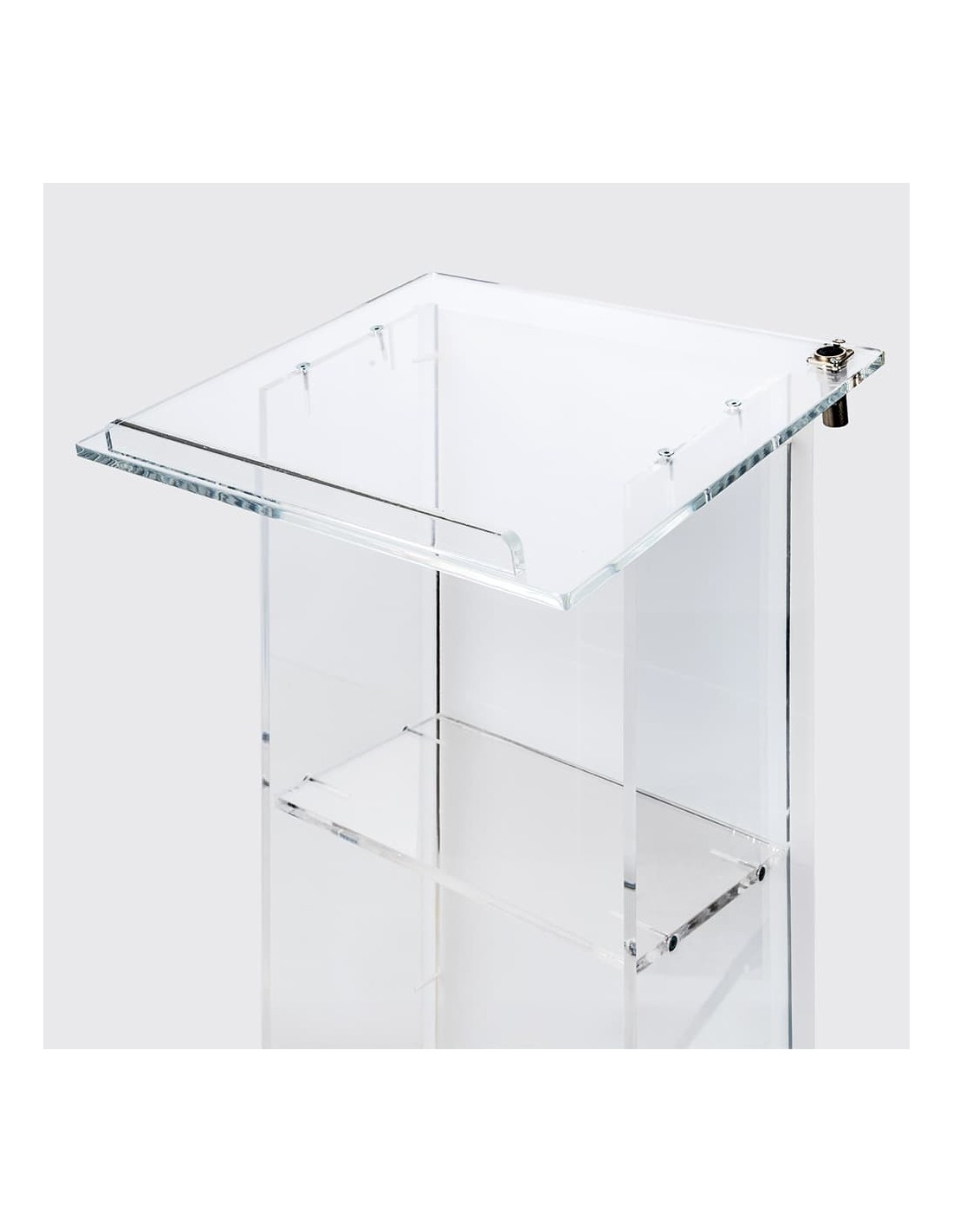 Con un acabado sofisticado y una estructura robusta, nuestro Atril de Metacrilato es la elección perfecta para ambientes formales y profesionales. Su diseño permite una fácil lectura de notas o discursos, mientras que su base estable proporciona una presencia segura en el escenario, facilitando la comunicación efectiva en cualquier evento.