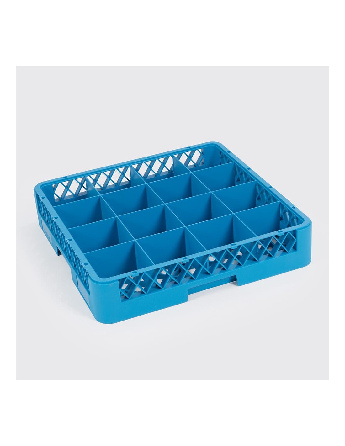 Fabricada con polipropileno de alta resistencia, esta cesta soporta temperaturas de hasta 120°C, lo que la hace ideal para el uso en lavavajillas industriales. Sus 16 compartimentos están diseñados para maximizar el espacio y facilitar el acceso a cada vaso, garantizando un lavado uniforme y una protección adecuada contra golpes y rasguños.