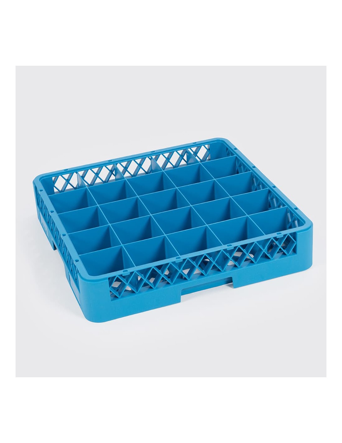 Cuenta con 25 compartimentos individuales de 9 x 9 cm, diseñados para proteger vasos y copas de tamaño medio, evitando golpes y reduciendo el riesgo de rotura durante el transporte o lavado.