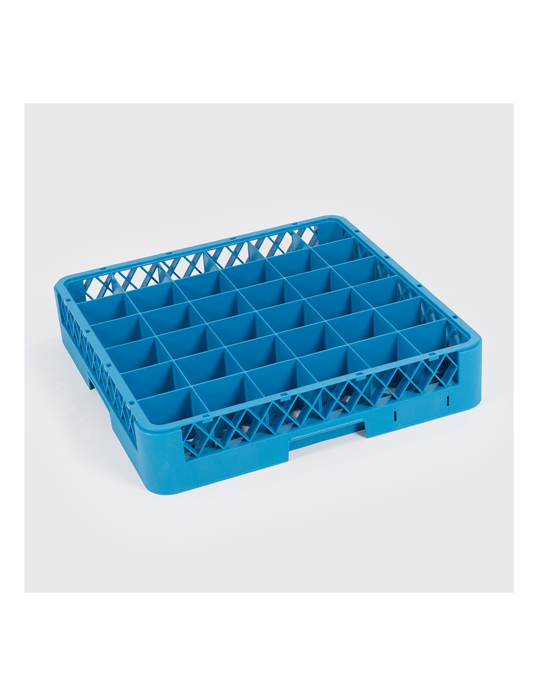 Dispone de 36 compartimentos individuales de 7,5 x 7,5 cm, especialmente diseñados para proteger vasos pequeños y cristalería delicada, reduciendo golpes y roturas durante el transporte o el lavado.