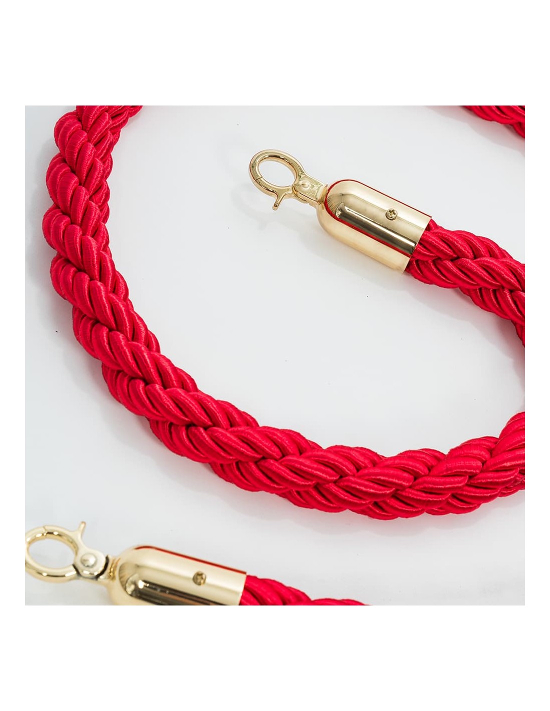 El cordón es de color rojo trenzado, no es liso, lo que hace que su calidad sea mucho mayor y el resultado y apariencia del montaje sea mucho más profesional y elegante. Perfecto para organizar clientes, entradas a zonas vip, para museos o para mantener la distancia de seguridad en establecimientos, tiendas, oficinas o lugares públicos.