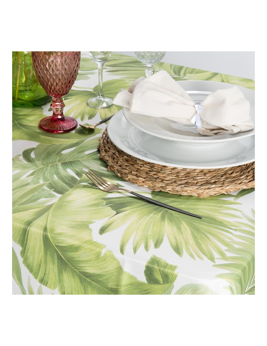 Disponible en dos tipos de materiales según el diseño elegido: los modelos con estampados MIAMI o PALMERAS están confeccionados en 100% poliéster, ofreciendo gran resistencia y facilidad de limpieza. Por otro lado, los diseños VICHY (negro, rojo, verde y amarillo) están elaborados con una mezcla de 55% algodón y 45% poliéster, ideales para quienes buscan un tacto más natural y una apariencia tradicional.
