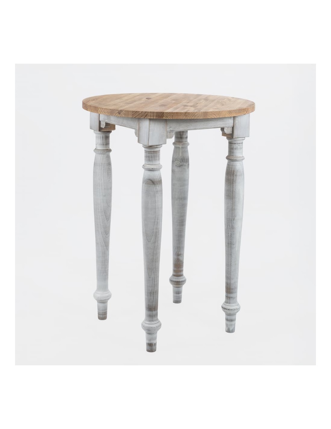 La Mesa Alta Rústica Redonda 80x110 de Solycarpa mide 80 cm de diámetro y tiene una altura de 110 cm.