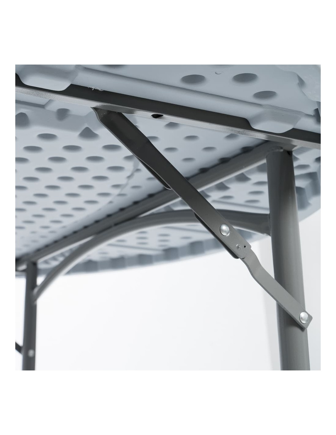 Perfecta para cualquier celebración, esta mesa se presta para ser el centro de reuniones, ya sean eventos corporativos o fiestas privadas. Su superficie amplia y forma redonda favorecen la interacción entre los comensales, haciendo de cada encuentro un momento especial. Además, su estructura plegable y ligereza permiten un montaje y desmontaje rápido, lo cual es esencial para profesionales del catering y organizadores de eventos que buscan eficiencia y calidad.