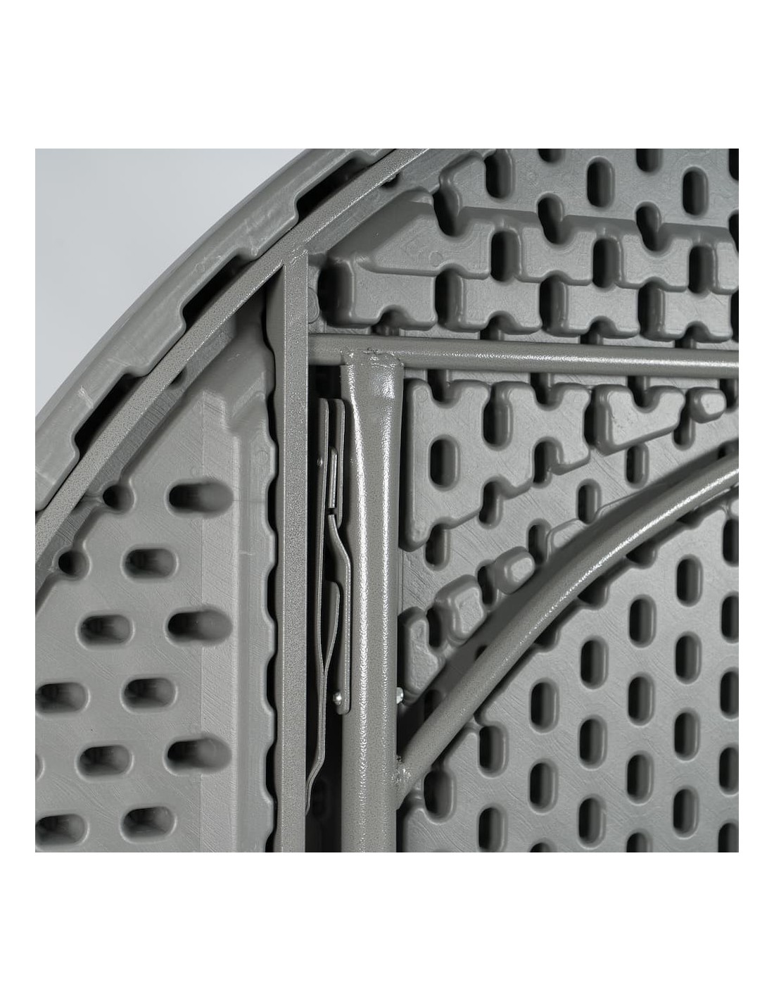 Mide 160 cm de diámetro y tiene una altura de 74 cm, proporcionando un amplio espacio para acomodar de 8 a 10 personas cómodamente. Su peso sin embalaje es de 22,7 kg, mientras que con caja pesa 25,7 kg. Este modelo está fabricado en polietileno de alta densidad con tratamiento anti UV, asegurando su durabilidad incluso en condiciones exteriores. La estructura está compuesta por acero lacado al polvo, lo que garantiza una resistencia superior. Con unas dimensiones de paquete de 162 x 162 x 6 cm, esta mesa es fácil de transportar y almacenar gracias a su diseño plegable.