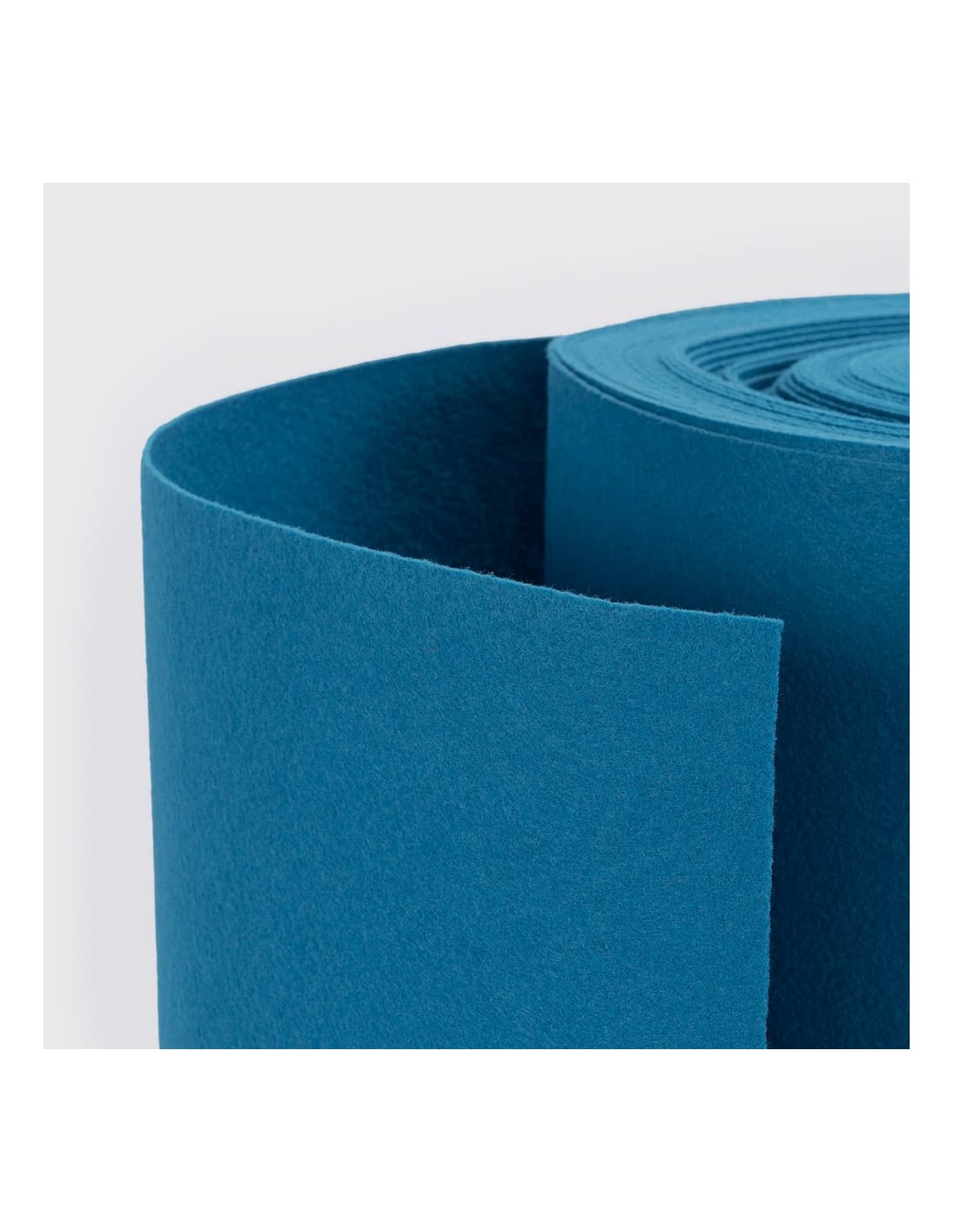 La Moqueta Azul Claro de Solycarpa mide 1 o 2 metros de ancho y está disponible en longitudes en múltiplos de 5 metros (por ejemplo, 1x20 m o 2x25 m).