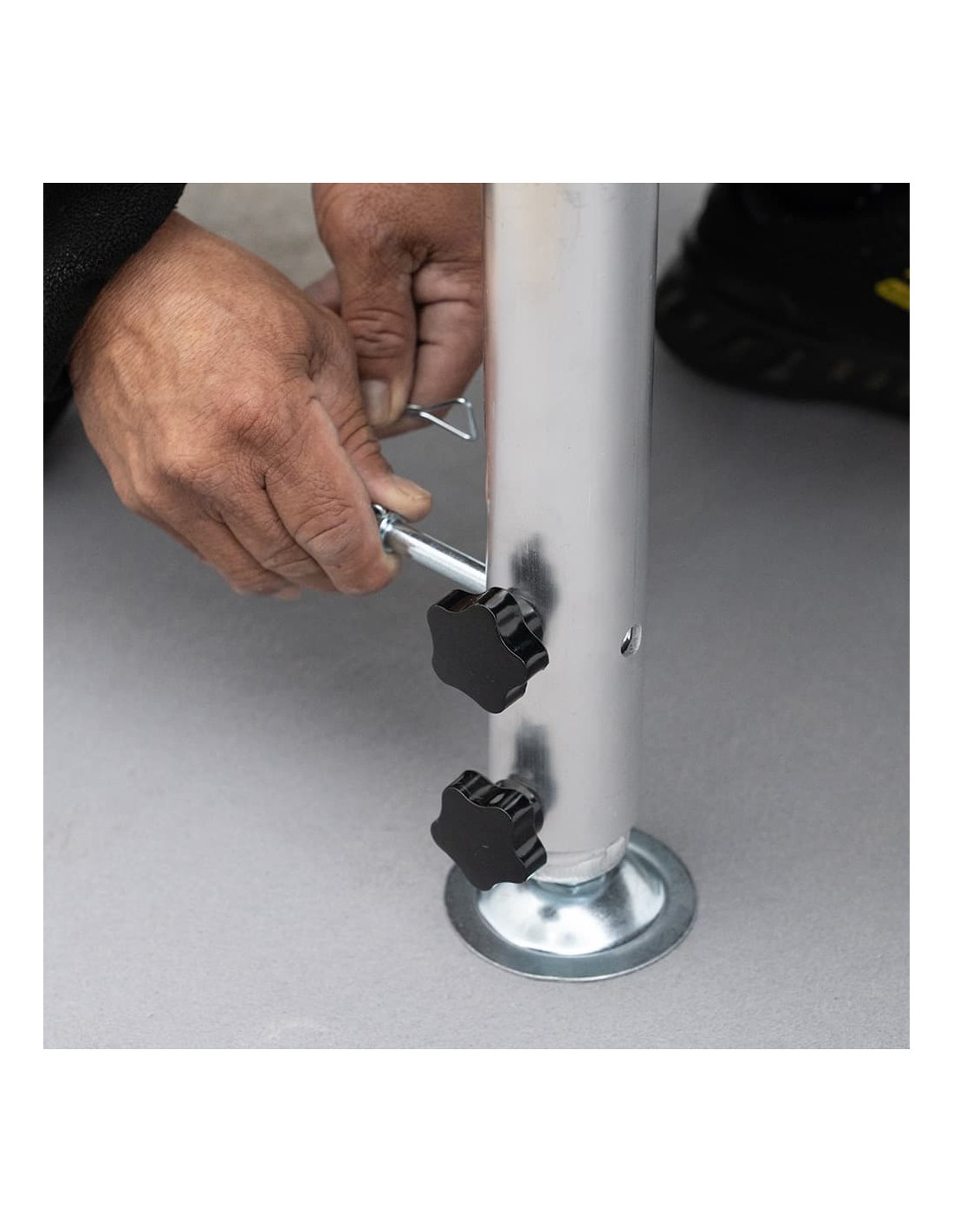 Con un sistema telescópico de dos cilindros y ajuste de cinco posiciones, estas patas son fáciles de instalar y proporcionan la flexibilidad necesaria para montajes de escenario personalizados. La tornillería con forma de estrella y los pernos de seguridad aseguran la estabilidad en todo momento.