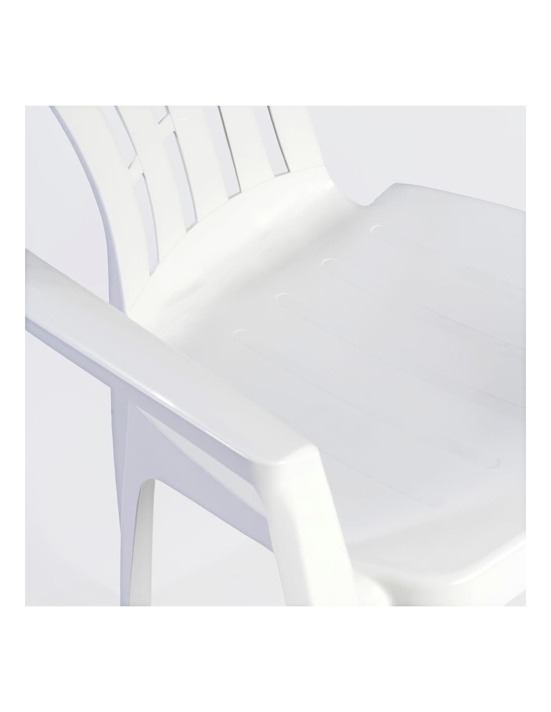 Debido a su resistencia y fácil mantenimiento, la Silla con Brazos Modelo Casablanca es ideal para eventos al aire libre, cafeterías, terrazas y cualquier espacio que requiera mobiliario duradero y estilizado. Su diseño elegante se adapta a diversos entornos, asegurando que tus espacios luzcan siempre impecables. Se aconseja poner tapas de goma para suelos cerámicos o resbaladizos.