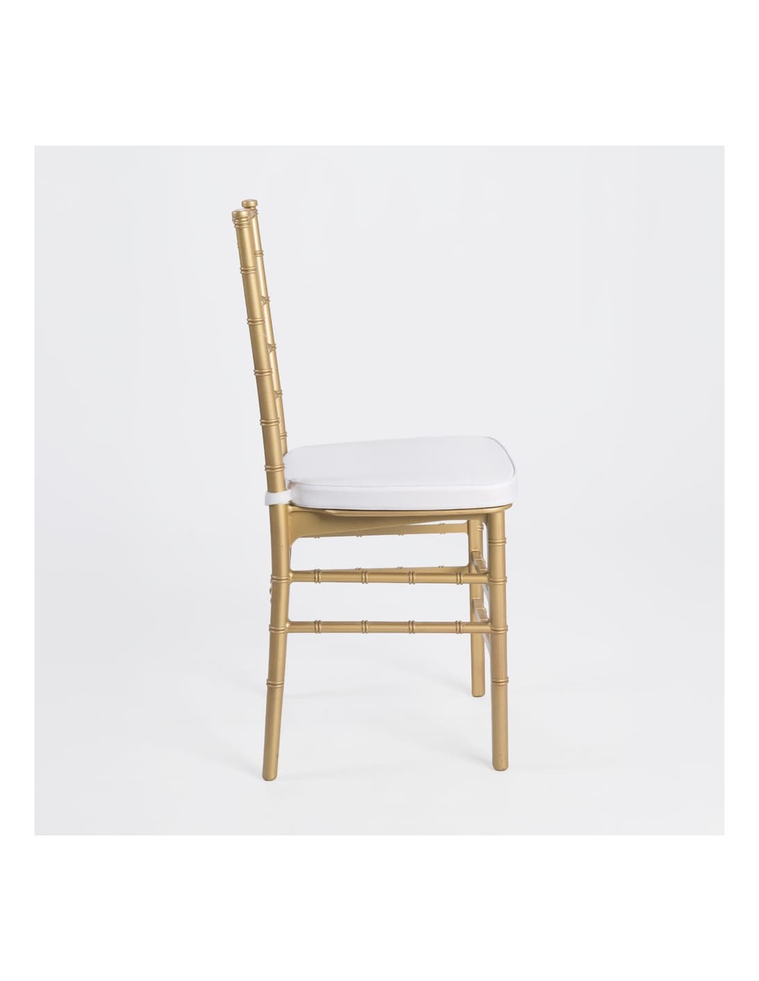 Construida para durar, nuestra Silla de Palillería Dorada con Cojín está fabricada en resina resistente a los rayos UVA, lo que asegura su longevidad y buen estado bajo distintas condiciones climáticas. El cojín incorporado proporciona una comodidad adicional, esencial para eventos prolongados. Además, su capacidad para soportar más de 150 kilos y su facilidad para apilarse destacan su funcionalidad y practicidad en cualquier tipo de evento.