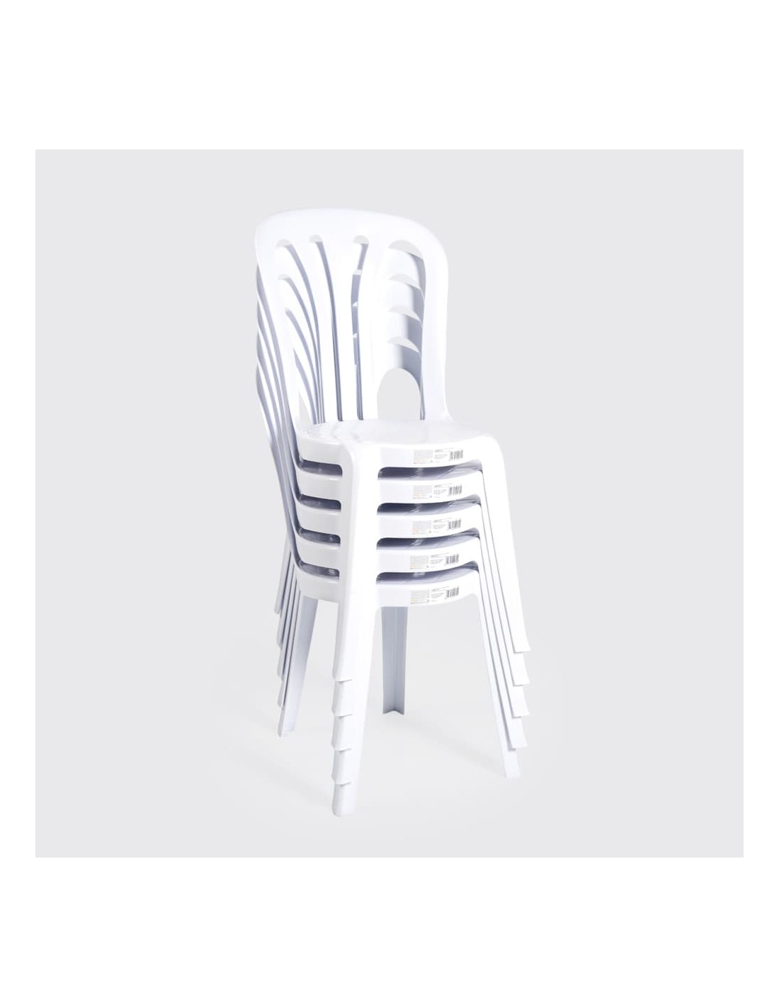 La Silla Garrotxa Blanca es una silla apilable profesional diseñada para eventos, hostelería y banquetes. Fabricada en polipropileno inyectado en una sola pieza, ofrece una estructura monobloque resistente, ligera y duradera, perfecta para un uso intensivo en entornos profesionales.