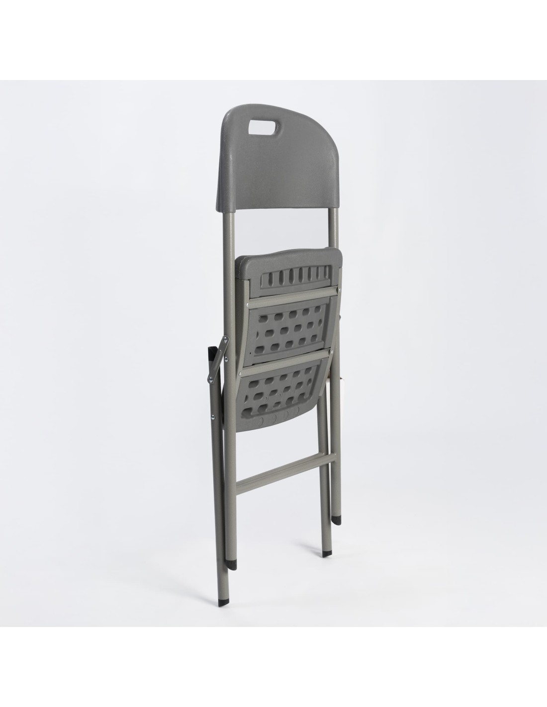 Con su diseño práctico, facilidad de almacenamiento y transporte, la Silla Plegable de Plástico Gris es la elección perfecta para cualquier ocasión que requiera una solución de asiento versátil, cómoda y duradera.