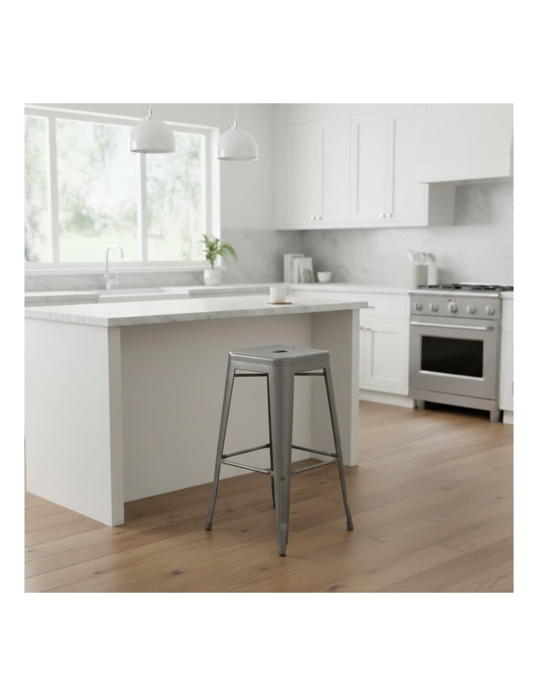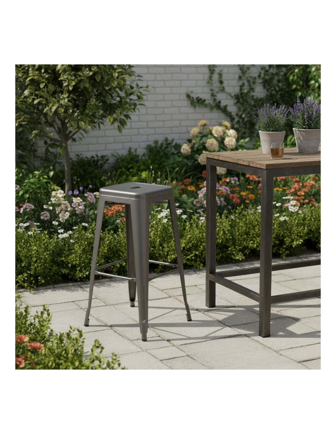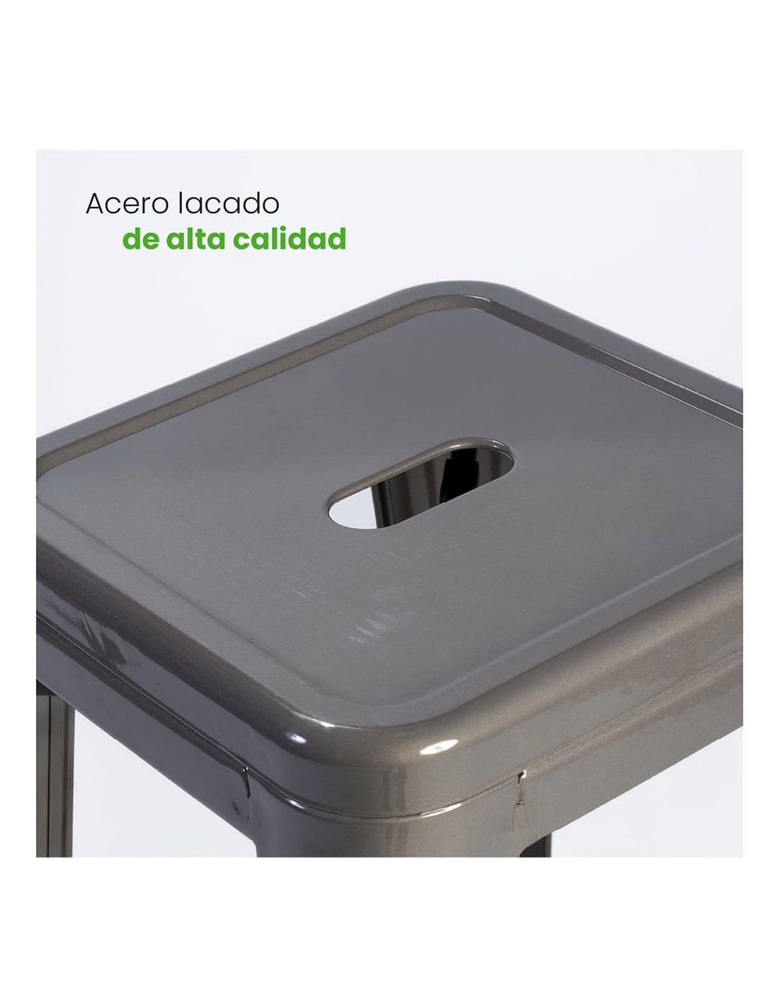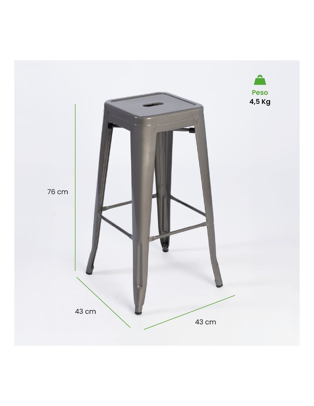 Nuestro Taburete Tolix Plata está diseñado para resistir el paso del tiempo gracias a su construcción en acero lacado. Su altura de 77 cm lo hace perfecto para barras y mesas altas, mientras que sus dimensiones de 43x43 cm ofrecen comodidad sin comprometer el espacio.
