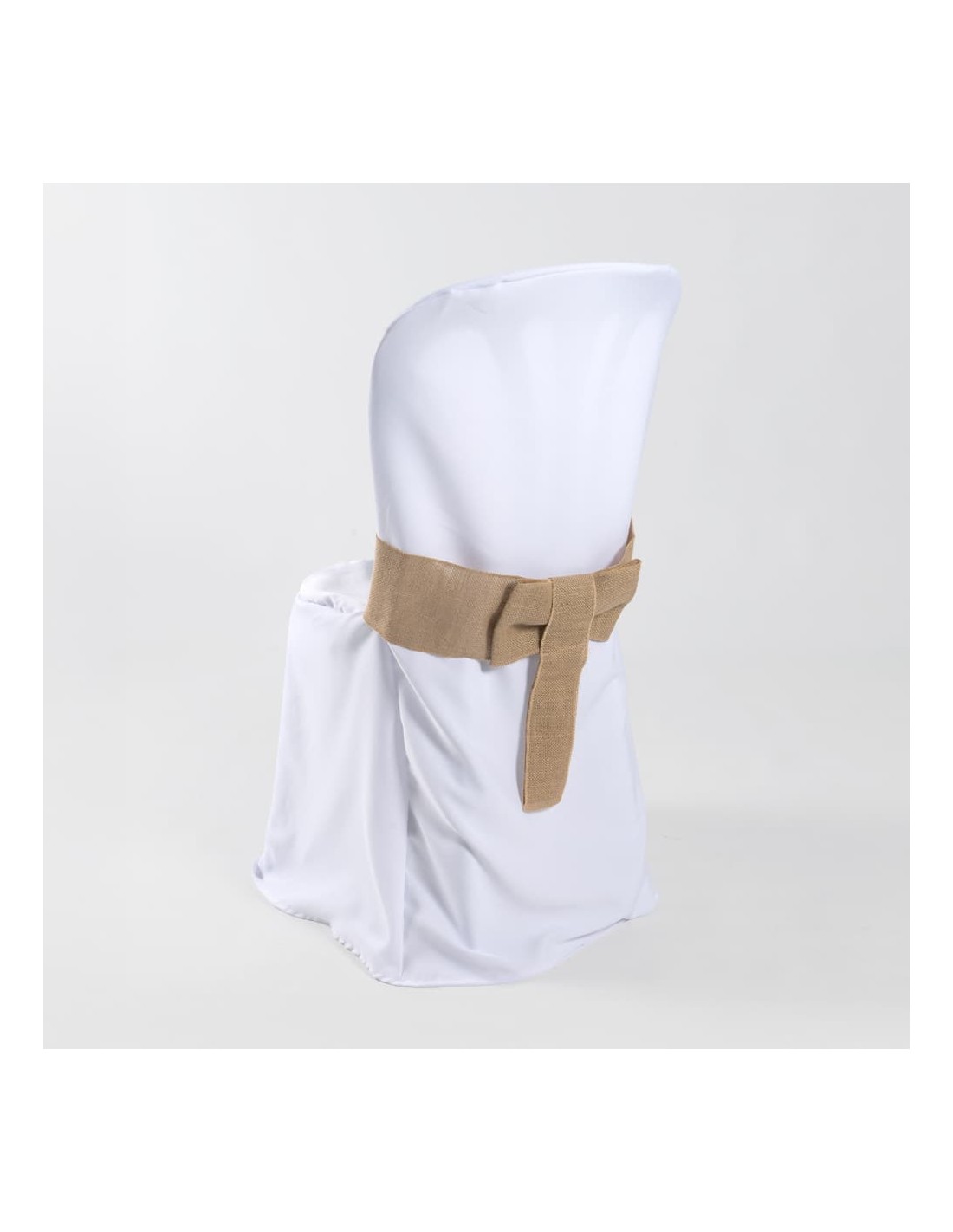 Os Laços de Juta para Cadeiras de Catering da Solycarpa são fabricados em juta 100% natural e têm um design personalizável conforme as necessidades do seu evento.
