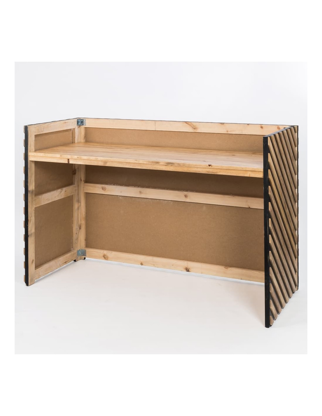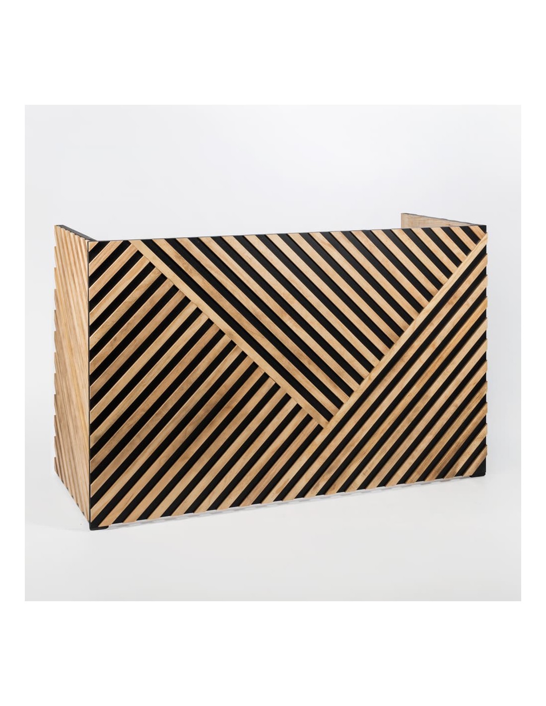 A cabine de madeira para DJ é a escolha perfeita para quem busca funcionalidade, estilo e resistência em eventos musicais. Fabricada com madeira de pinho maciça, destaca-se pelo seu design moderno com linhas diagonais, conferindo sofisticação ao ambiente.