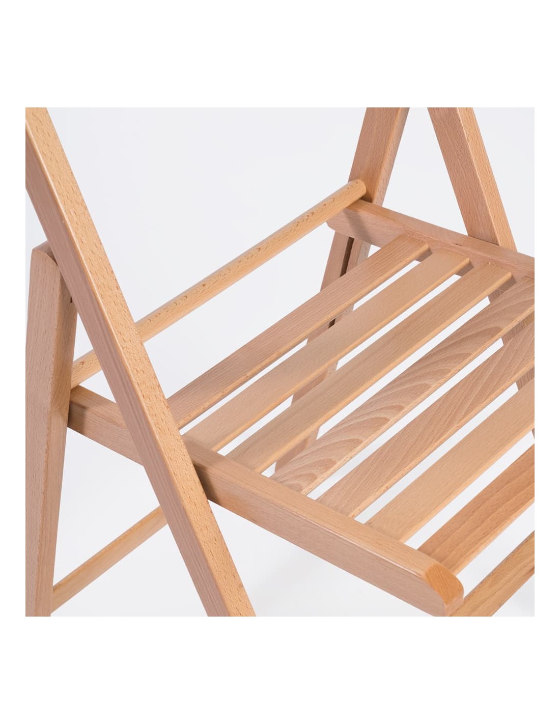 ✔ Cadeira Dobrável de Madeira: Fabricada em madeira maciça de faia com ferragens em aço para maior resistência.