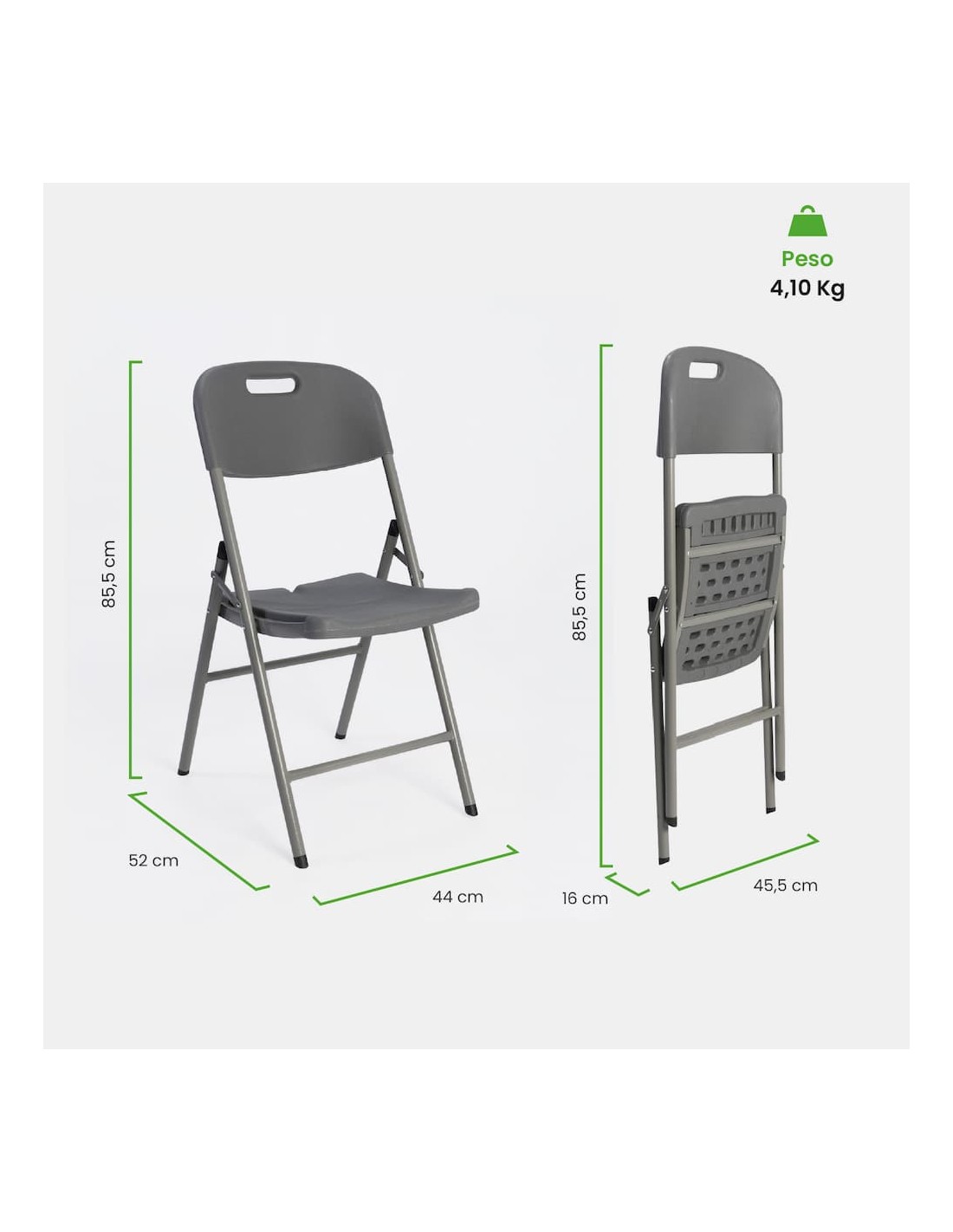✔ Cadeira Dobrável de Plástico Cinza: Estrutura em aço com assento e encosto em HDPE, resistente e durável.