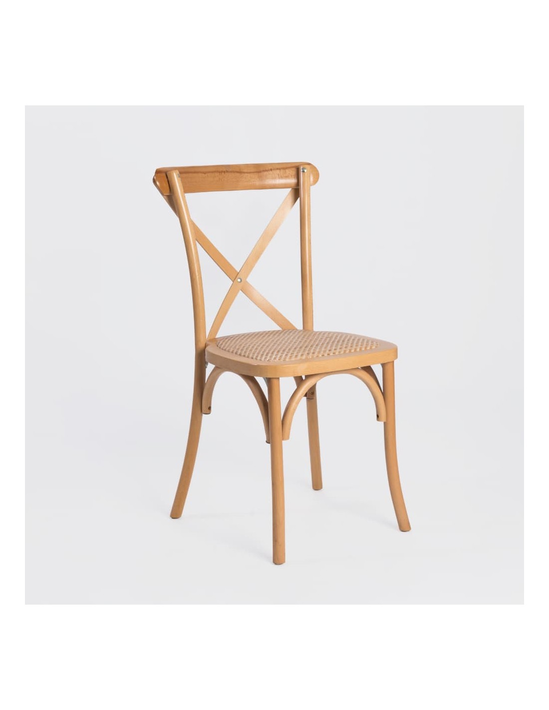 Apresentamos a Cadeira Crossback da Solycarpa, uma peça de mobiliário essencial para qualquer evento que exija um toque de elegância e estilo. Feita de madeira de faia, esta cadeira é resistente e durável, ideal para eventos ao ar livre e em ambientes internos. Seu design clássico com encosto em forma de X e assento de rattan destaca-se em qualquer ambiente, desde casamentos até restaurantes elegantes.