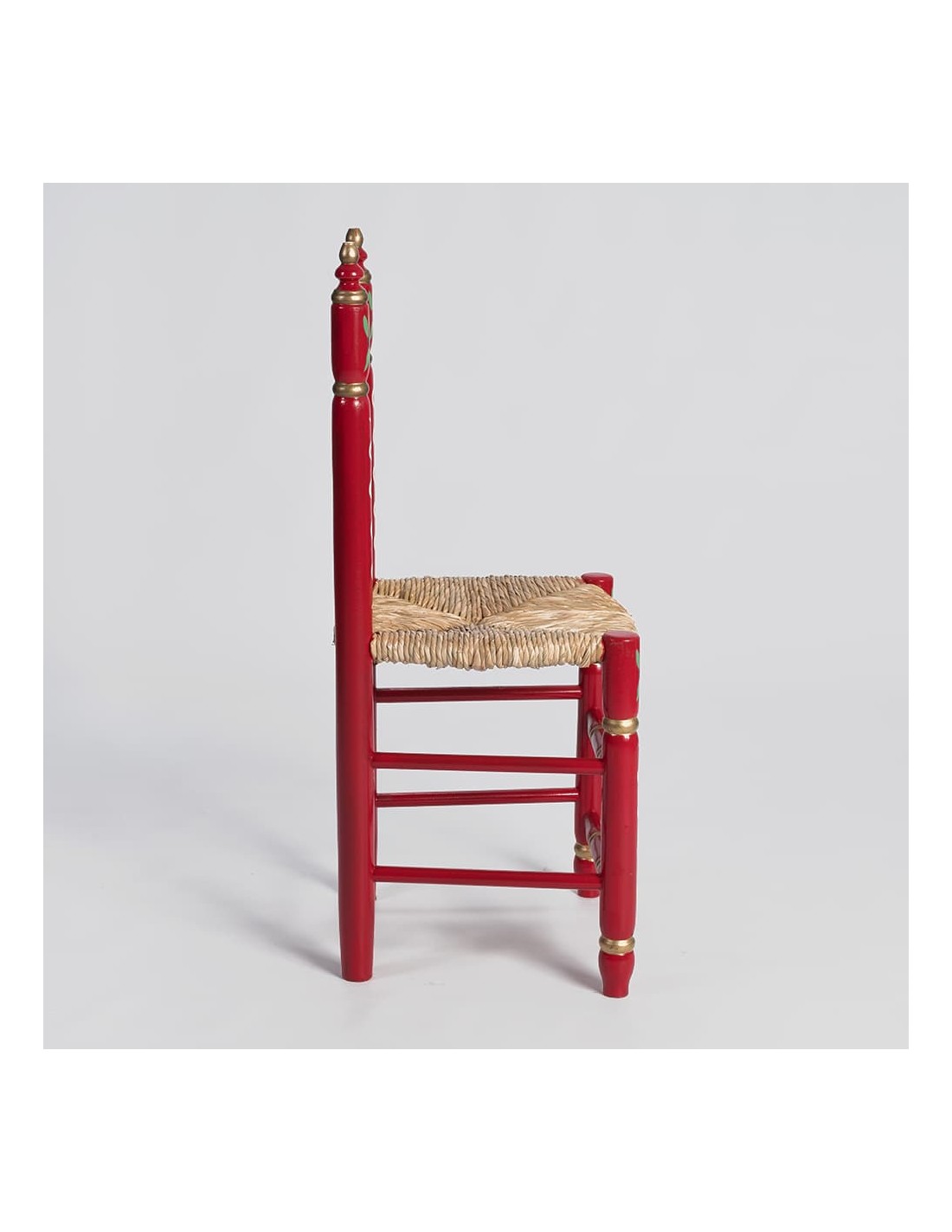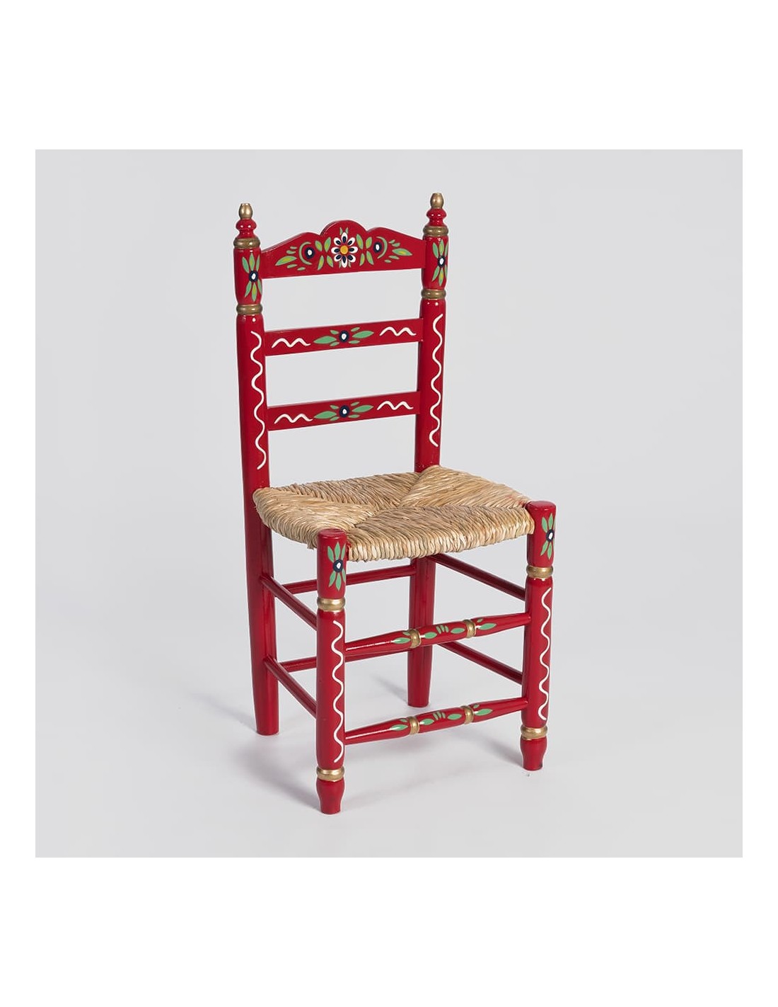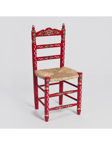 Esta cadeira é fabricada em madeira de choupo ecológica de alta resistência e é completamente artesanal, utilizando técnicas tradicionais de montagem. Seu design é decorado à mão com um motivo floral típico da Andaluzia, o que lhe confere um caráter autêntico e culturalmente rico.