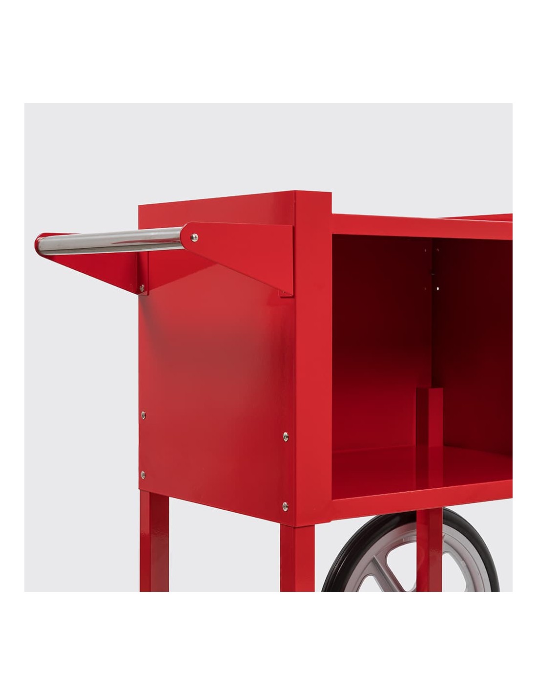 O Carrinho para máquina de pipocas foi desenvolvido para oferecer mobilidade e praticidade no uso da sua pipoqueira. Com estrutura em aço pintado de vermelho e rodas de borracha resistentes, é ideal para uso em cinemas, feiras, escolas e eventos diversos.