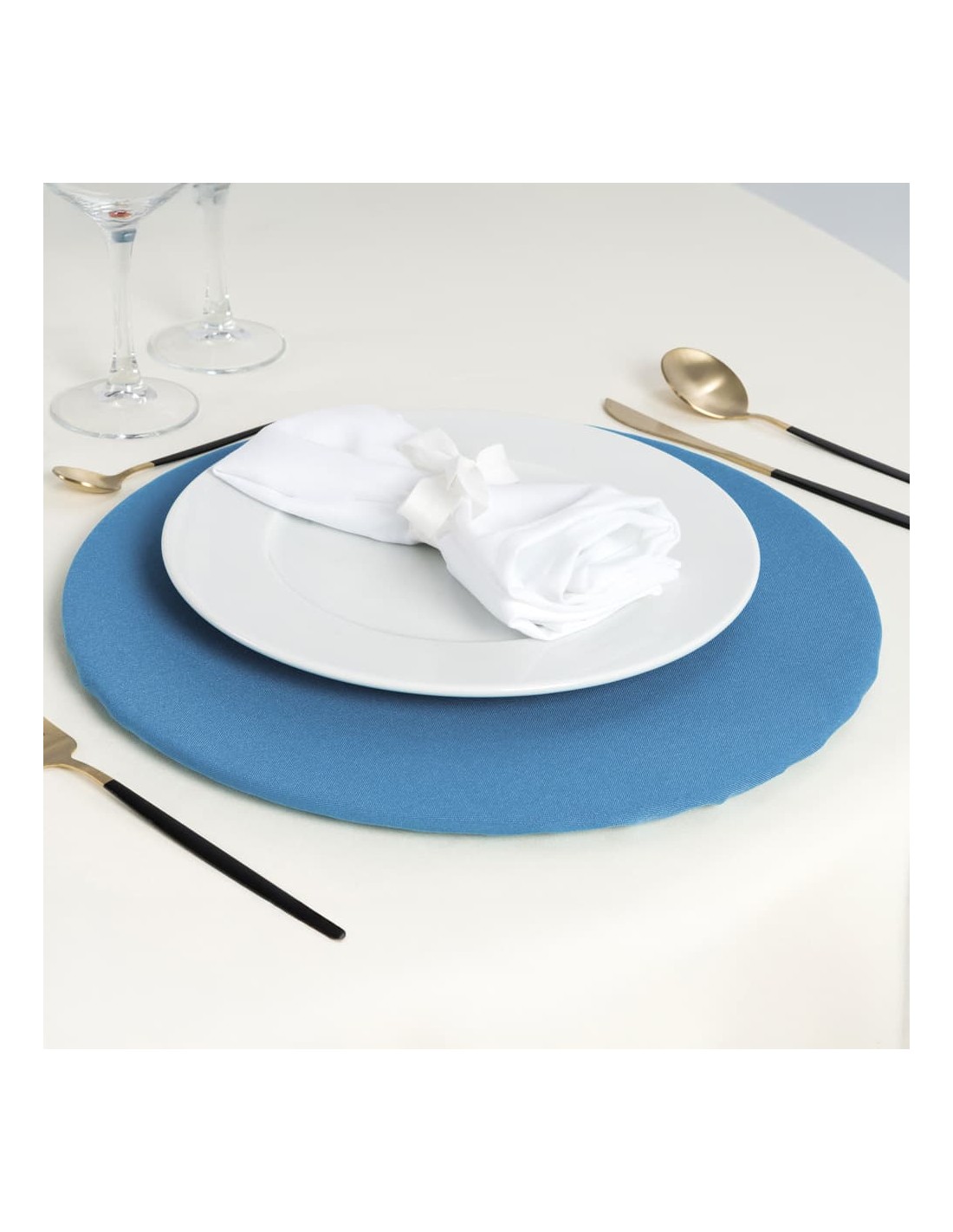 Esta capa tem um diâmetro de 34 centímetros, projetada especificamente para ajustar-se perfeitamente aos sousplats de madeira.