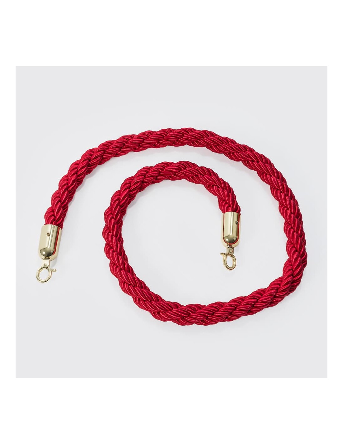 O cordão é trançado vermelho, não é liso, o que torna sua qualidade muito superior e o resultado e aparência da montagem muito mais profissional e elegante. Perfeito para organizar clientes, entradas em áreas VIP, para museus ou para manter uma distância segura em estabelecimentos, lojas, escritórios ou locais públicos.