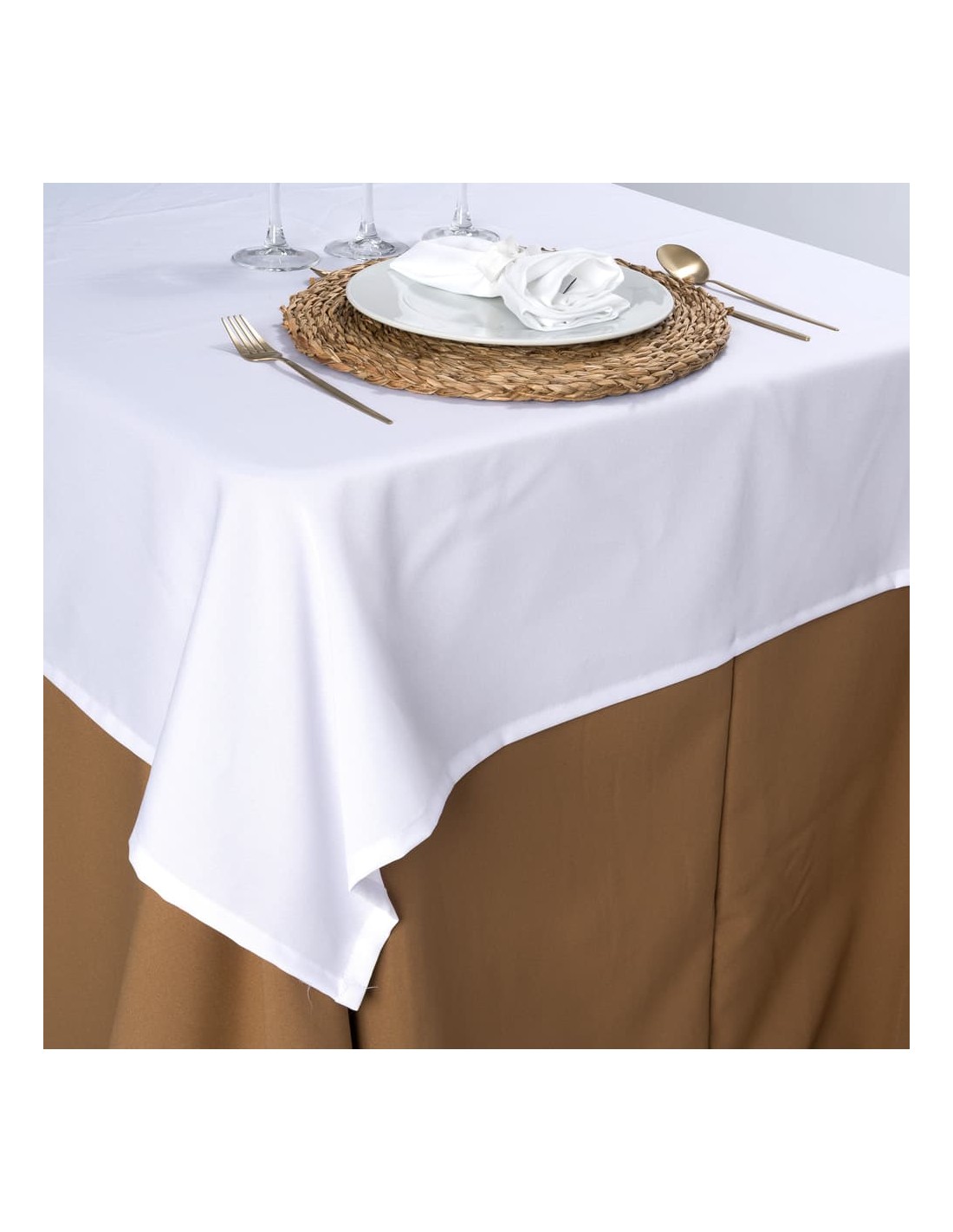 Com peso de 230 g/m², o tecido de cetim proporciona uma queda suave e um brilho elegante que valoriza qualquer mesa quadrada, oferecendo uma apresentação impecável.