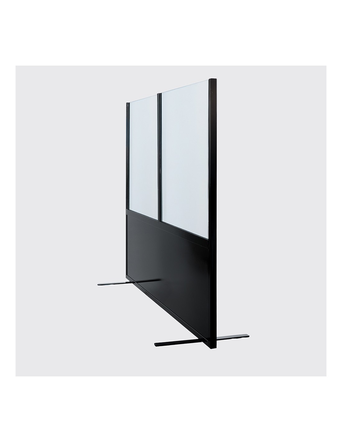 Fabricado com tubos de ferro de 60 x 20 mm e chapa de alta qualidade, este separador é robusto e durável. Disponível em várias medidas: 100 x 140 cm, 150 x 140 cm e 200 x 140 cm, adapta-se a diferentes espaços e necessidades. A opção de incluir metacrilato e rotulação permite uma personalização completa, integrando logotipos, designs ou mensagens específicas para adaptar-se à identidade da sua empresa ou evento.