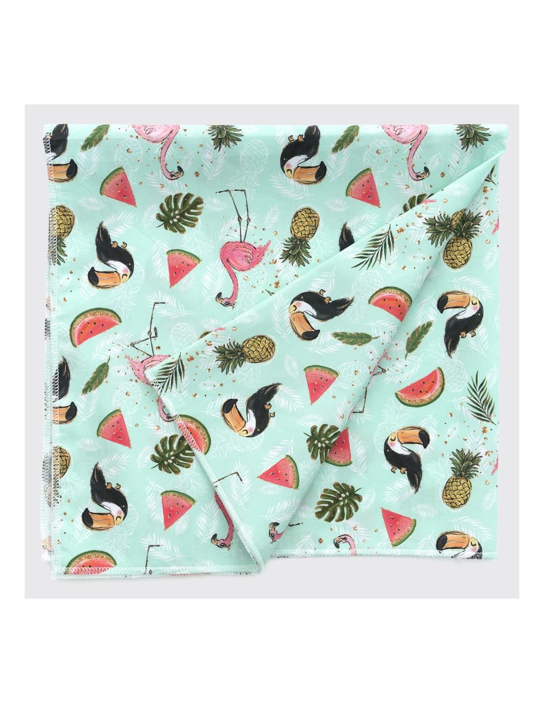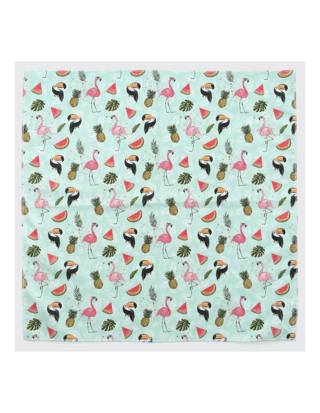 O Guardanapo de flamingos é ideal para quem busca um toque tropical e elegante na mesa. Seu design vibrante com flamingos cor-de-rosa, abacaxis e melancias sobre fundo verde menta o torna uma peça charmosa e refrescante.