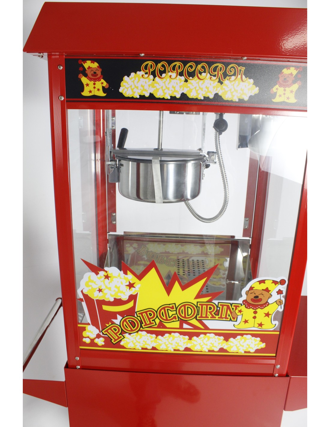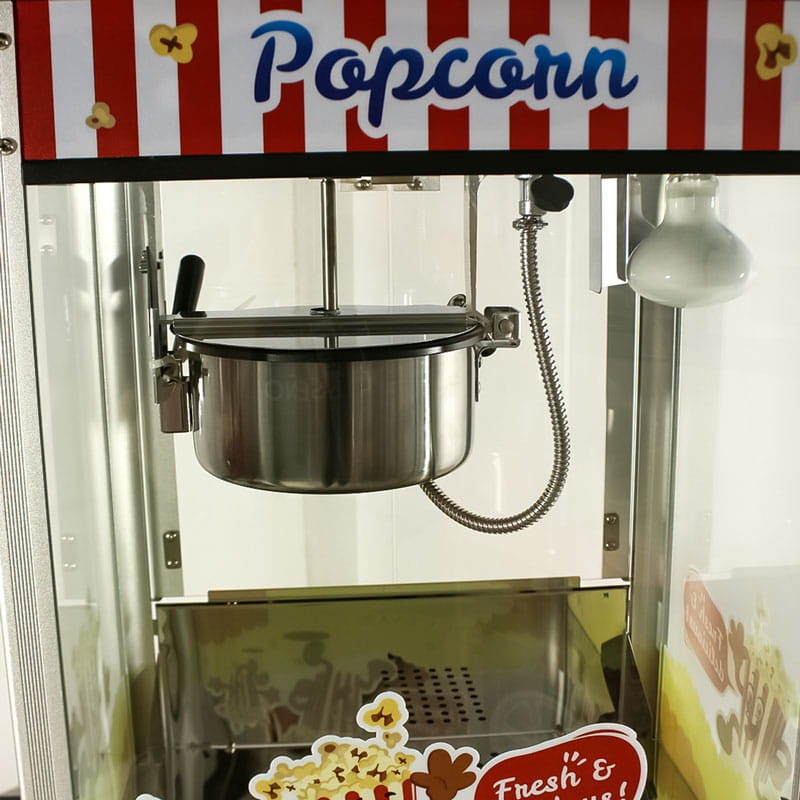 Com dimensões de 36 cm de largura, 56 cm de comprimento e 76 cm de altura, e uma panela de 18,5 cm de diâmetro revestida com teflon, evita que as pipocas grudem e facilita a limpeza. Pesa 24,5 kg, possui potência de 1350 W e capacidade para até 5 kg/h.