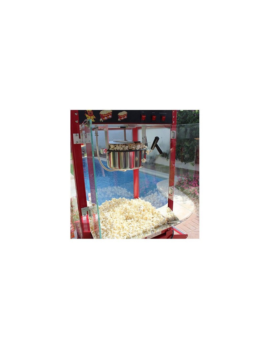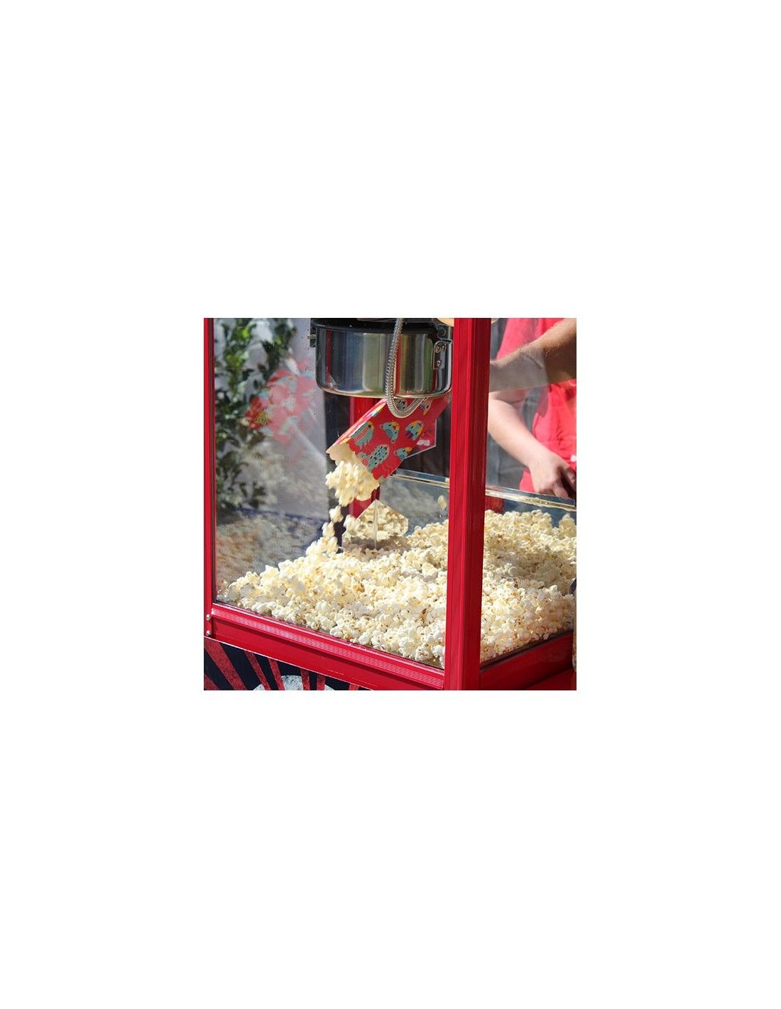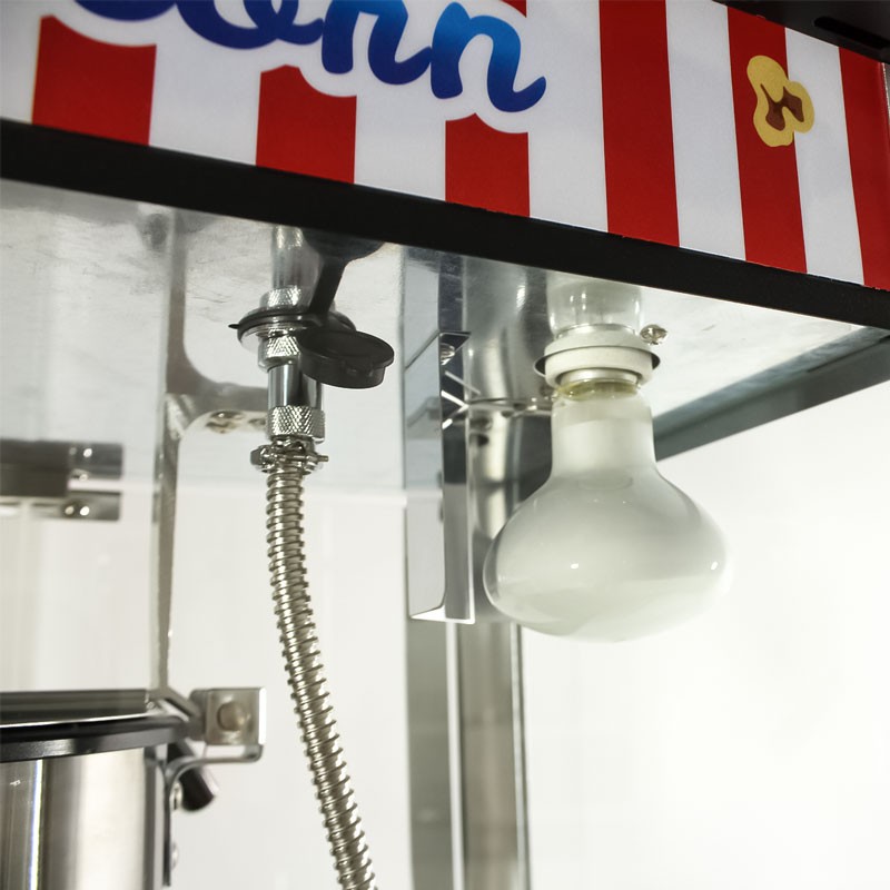 A Máquina de Pipocas tem um visual clássico americano com um chamativo acabamento em vermelho, perfeita para dar vida a qualquer celebração. Fabricada em aço inoxidável pintado, com iluminação interna, é ideal para casamentos, aniversários, comunhões e eventos corporativos.