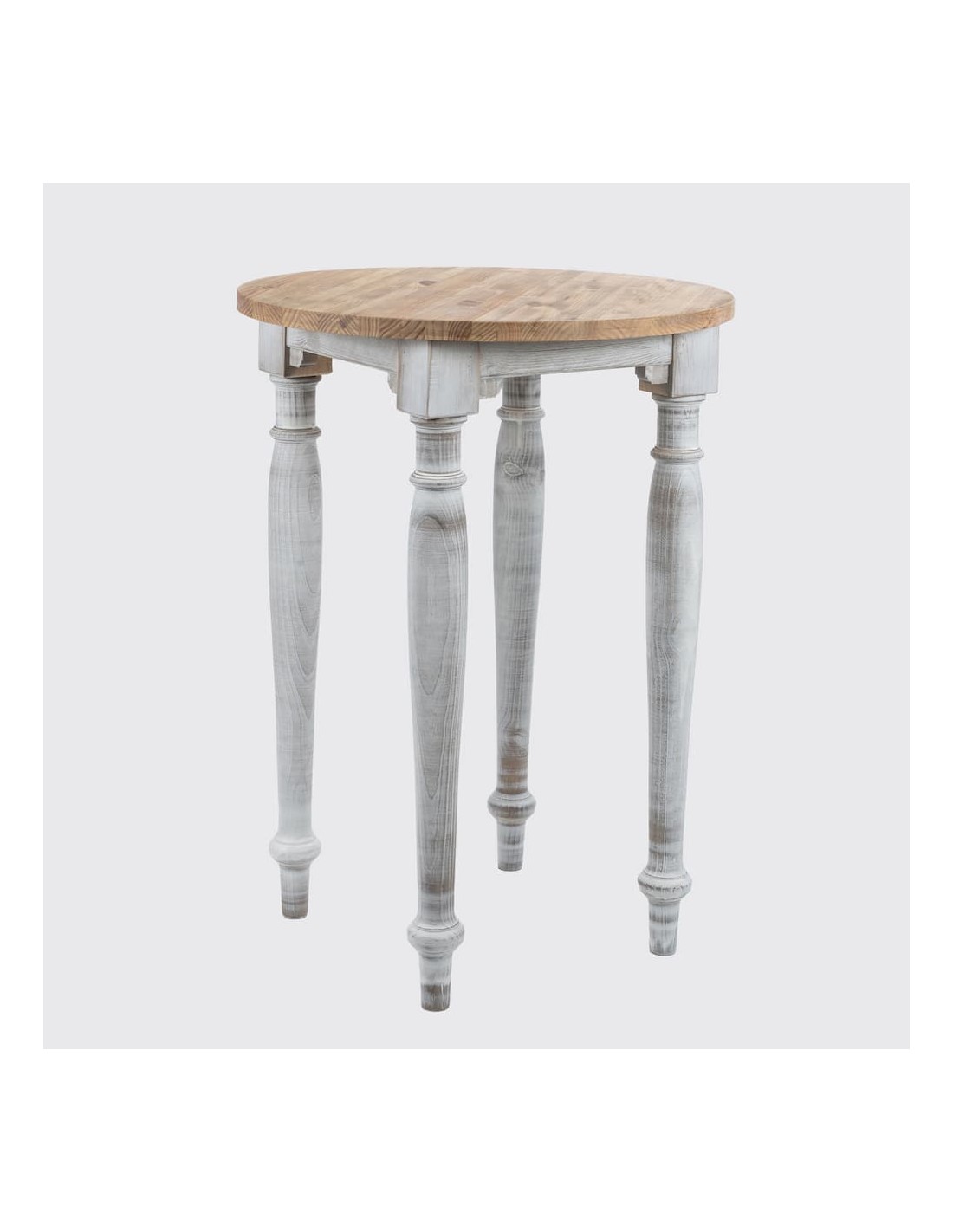 A Mesa Alta Rústica Redonda 80x110 da Solycarpa mede 80 cm de diâmetro e tem uma altura de 110 cm.