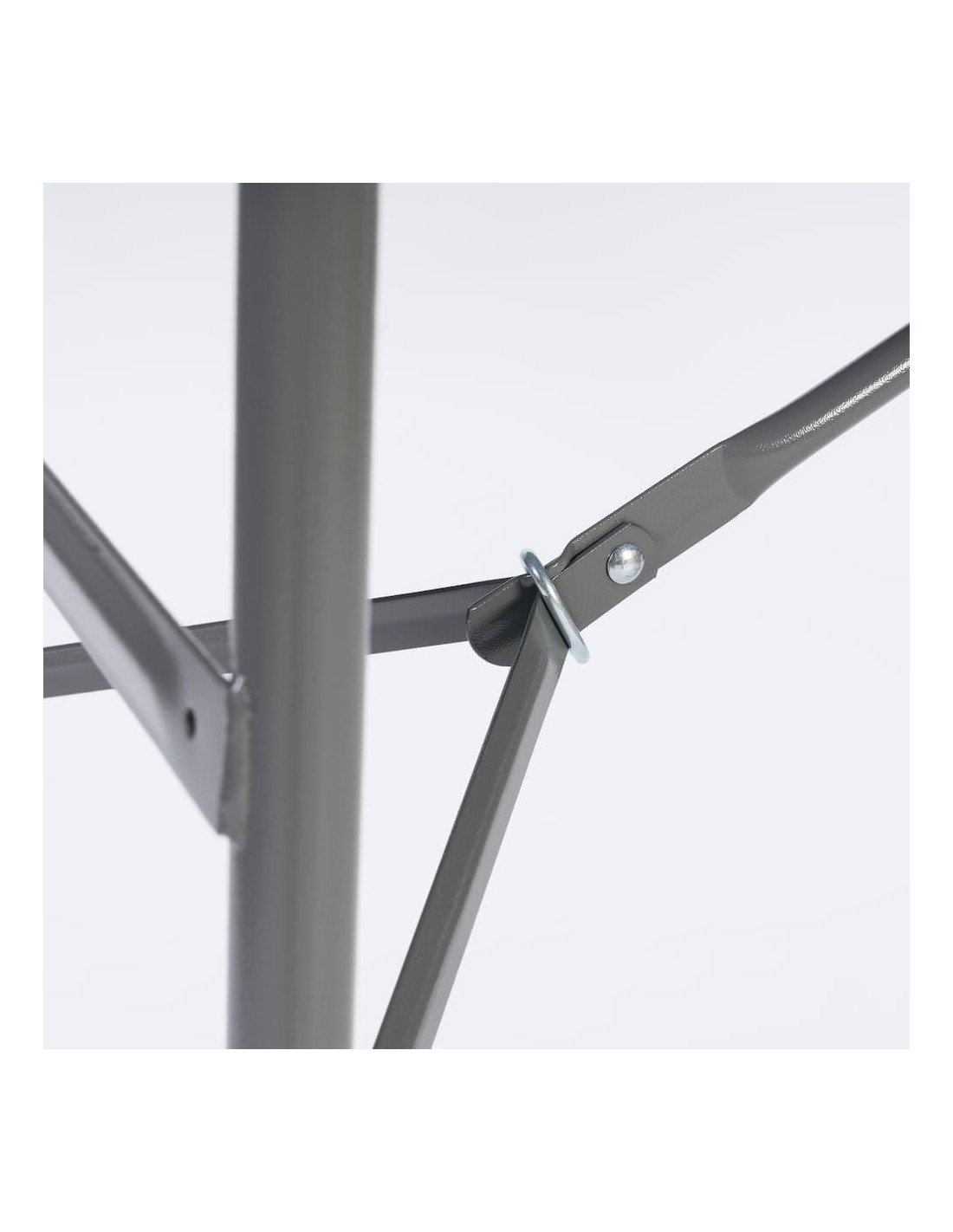 O tampo é fabricado em polietileno de alta densidade (HDPE) e a estrutura é em aço lacado por pulverização.