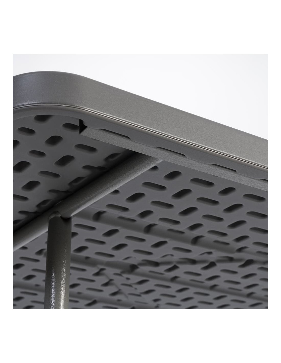Esta mesa mede 200 cm de comprimento, 90 cm de largura, e tem uma altura de 74 cm. Seu peso é de 16,2 kg.