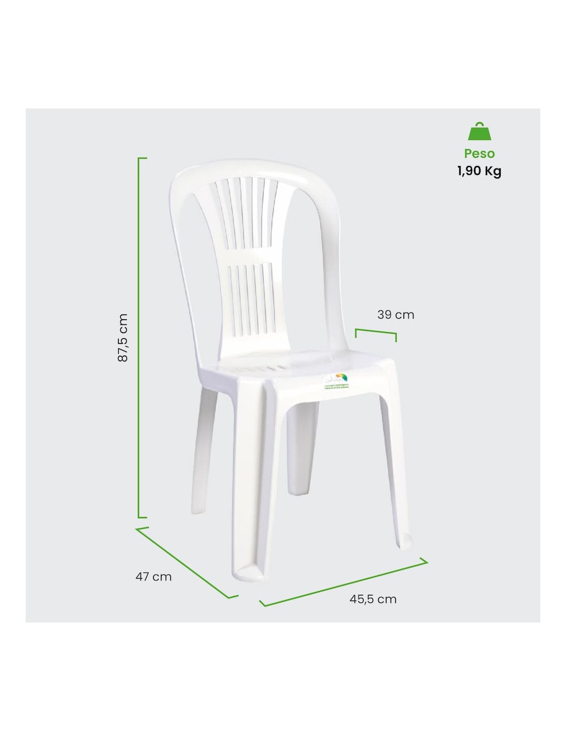 ✔ Cadeira New Planet em polipropileno: Monobloco, leve, resistente e adequada para uso interno e externo.