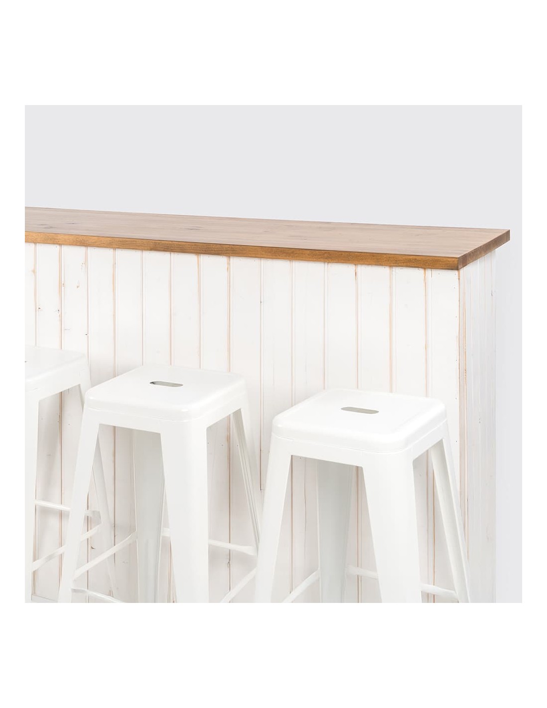 O Pack Balcão de Madeira + Quatro Bancos da Solycarpa é a combinação perfeita de funcionalidade e design para qualquer evento. Com um balcão de madeira dobrável e bancos de aço lacado, este conjunto é ideal para servir bebidas e refeições em terraços de verão, jardins ou interiores.
