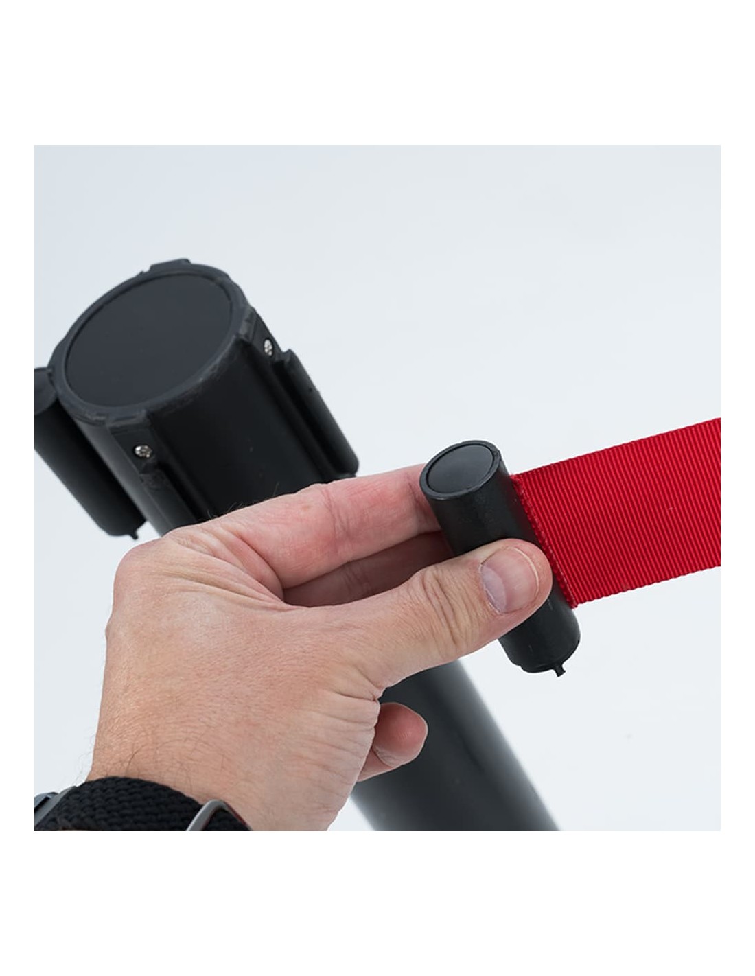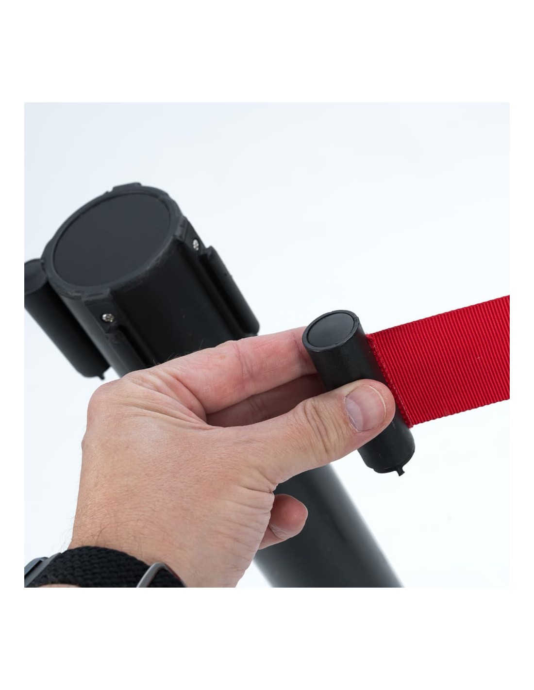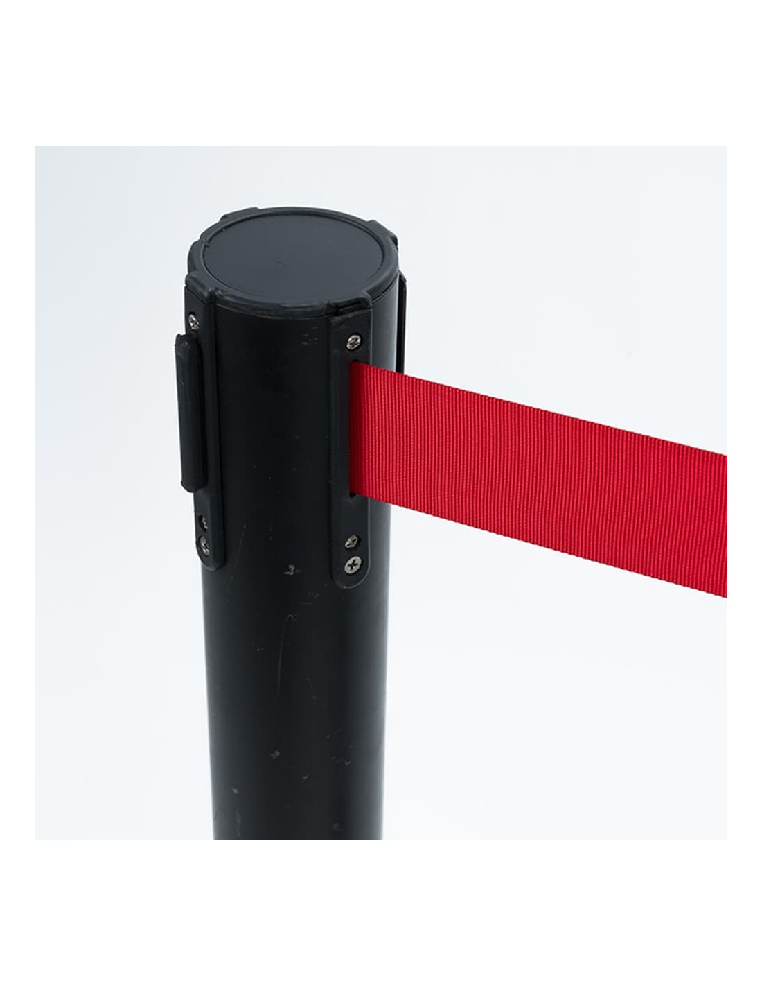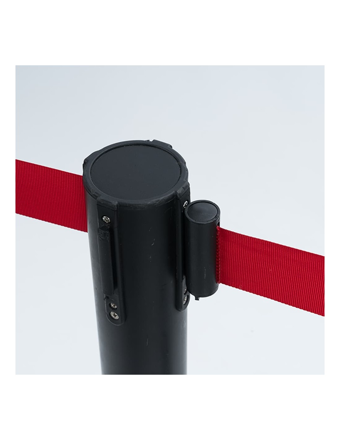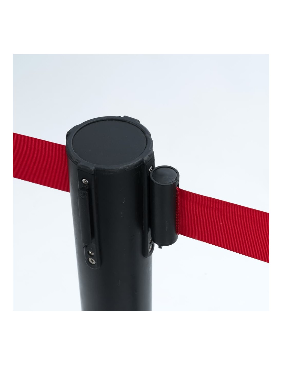 Poste separador preto com fita extensível vermelha é perfeito para organizar filas de pessoas, indicar entradas e saídas de instalações ou locais, marcação de piso, proteção, etc. O Poste Separador é muito fácil de montar, desmontar e transportar. Além disso, a base é um pouco pesada para evitar quedas e dar mais segurança. Cada Poste Separador possui 1 fita retrátil de nylon vermelha e 3 ganchos para outras fitas.