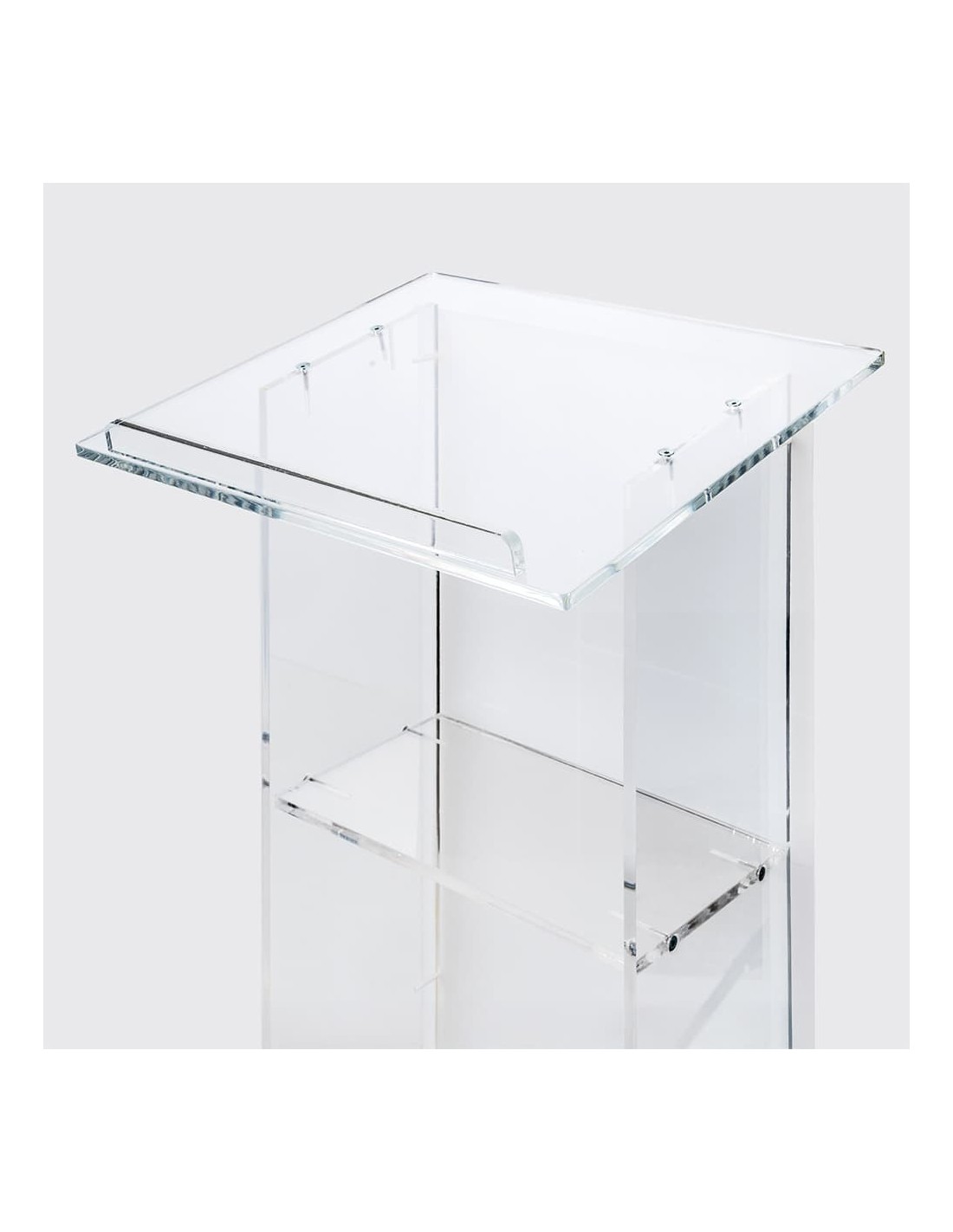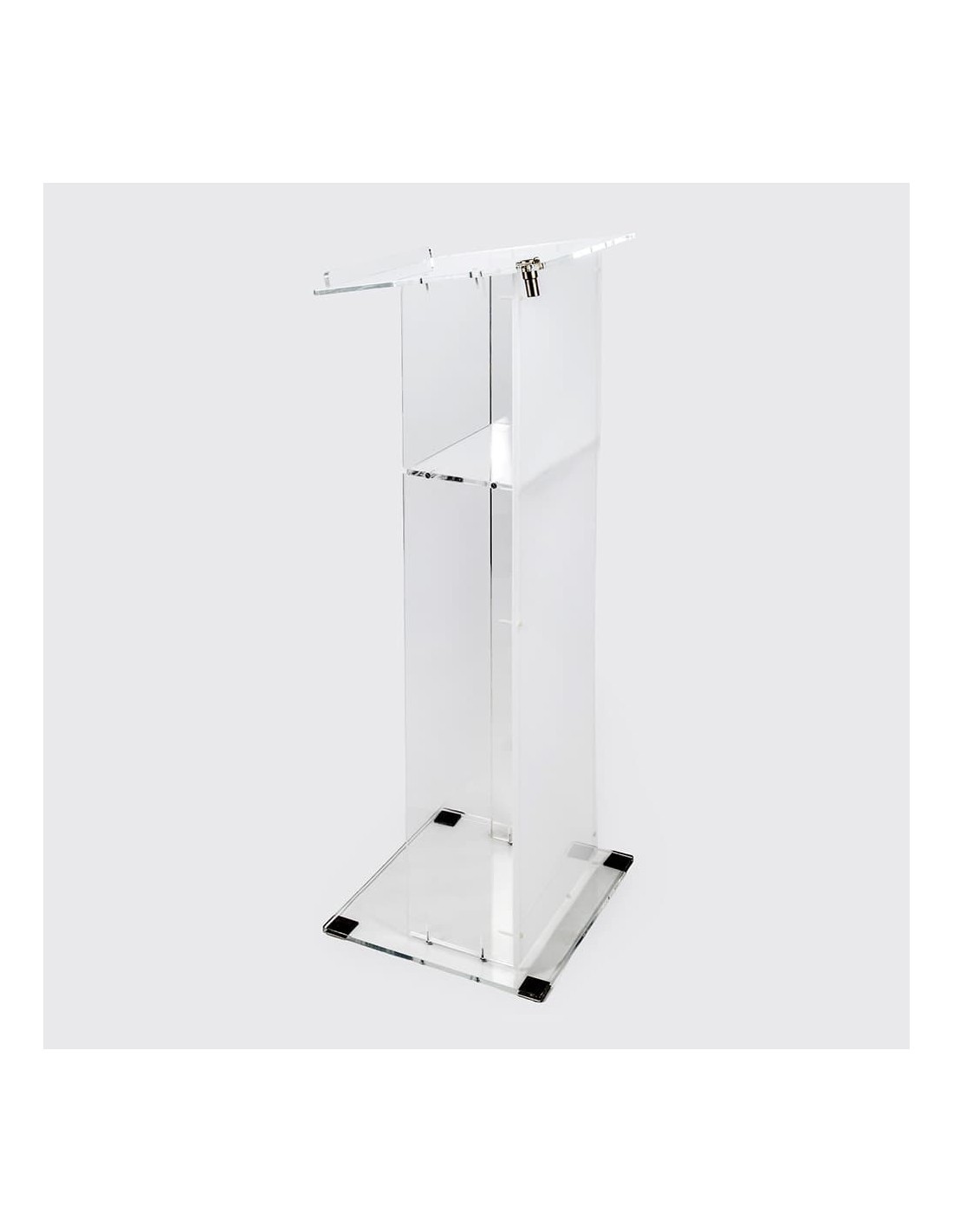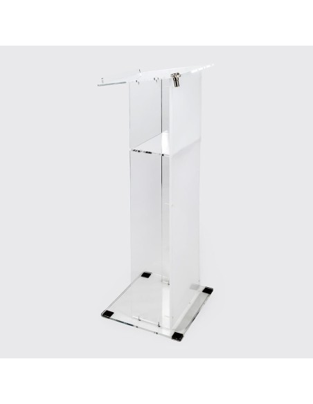 Com um acabamento sofisticado e uma estrutura robusta, o nosso Púlpito de Metacrilato é a escolha perfeita para ambientes formais e profissionais. Seu design permite uma fácil leitura de notas ou discursos, enquanto a sua base estável proporciona uma presença segura em palco, facilitando a comunicação eficaz em qualquer evento.