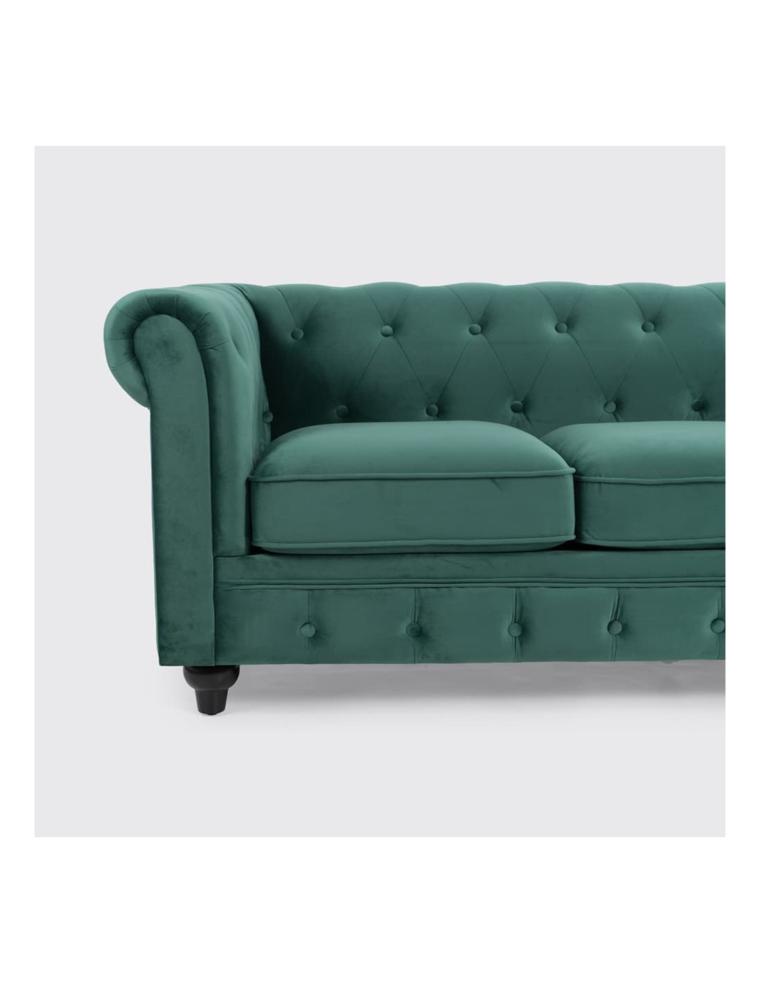 - Sofá Chéster de 3 Plazas en Terciopelo Verde