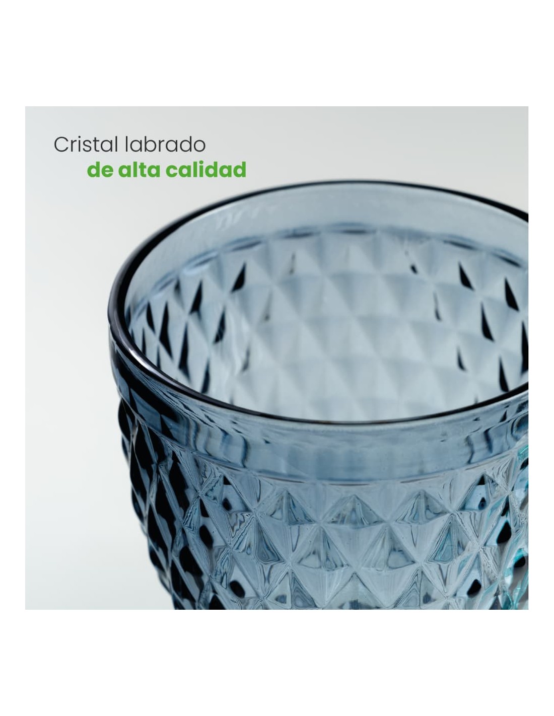 Disponíveis numa gama de cores vibrantes como azul, púrpura, azul água-marinha, verde oliva e âmbar, não só são um deleite visual, como também prometem uma experiência de bebida superior. O seu design trabalhado traz um toque doce, romântico e vintage, que se destaca em qualquer mesa e acrescenta um encanto especial à ocasião.