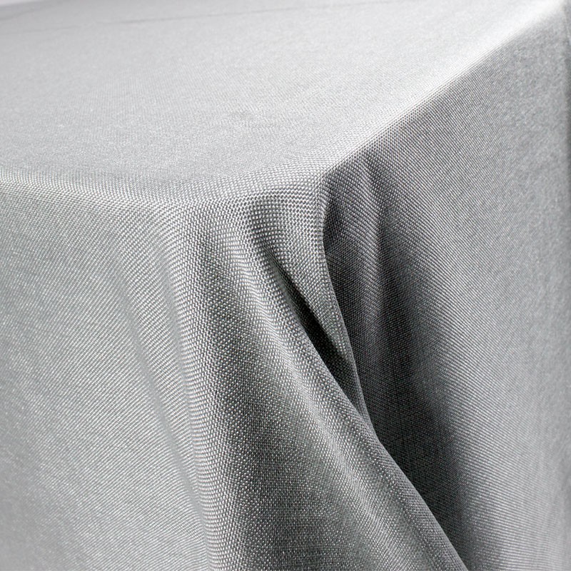 Esta toalha mede entre 330x225 cm e está disponível em comprimentos que variam entre 272 cm e 350 cm, sendo ideal para mesas de vários tamanhos.