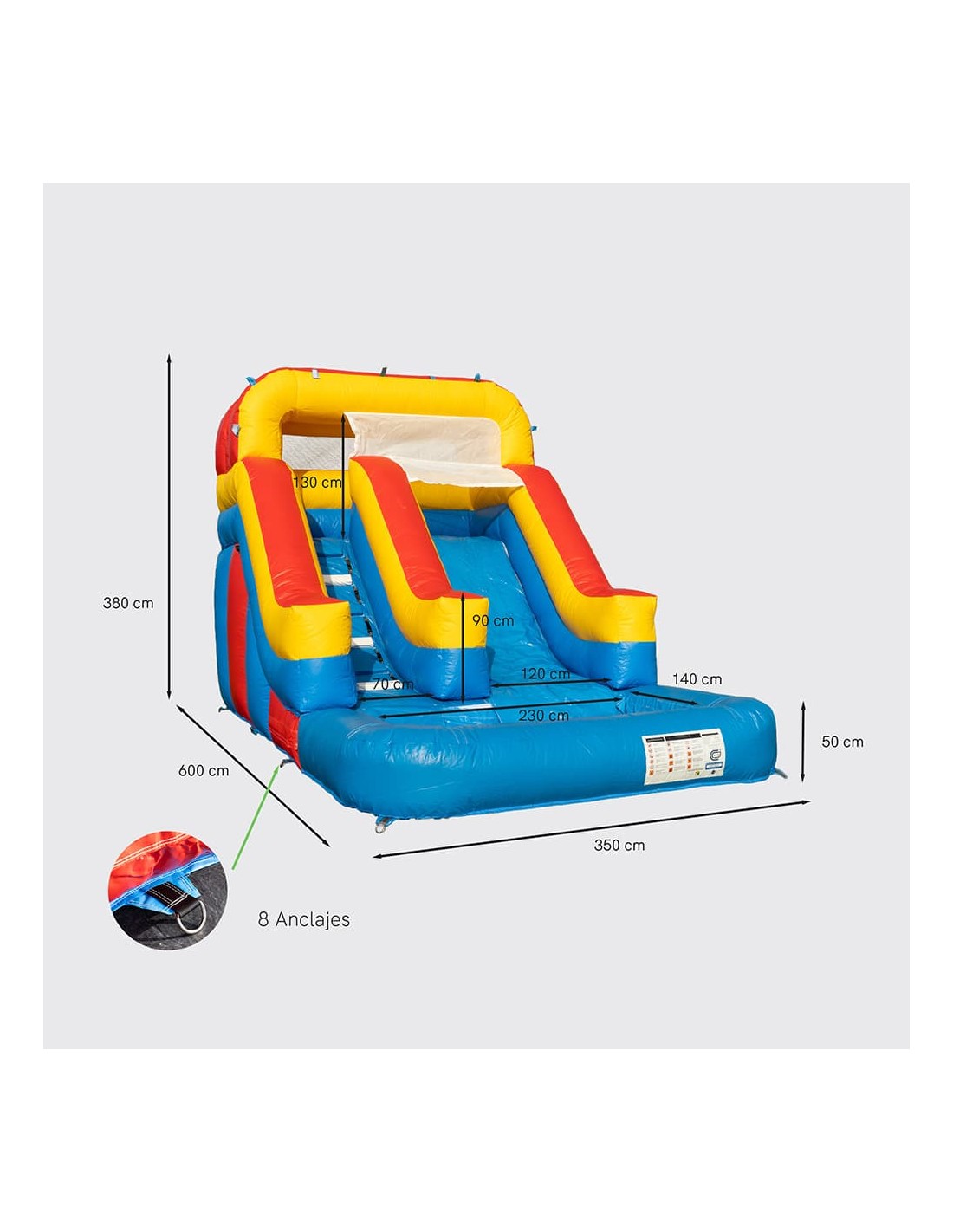 O tobogã aquático inflável é a atração perfeita para animar qualquer evento. Com design vibrante e estrutura reforçada, é ideal para uso comercial e locações frequentes.