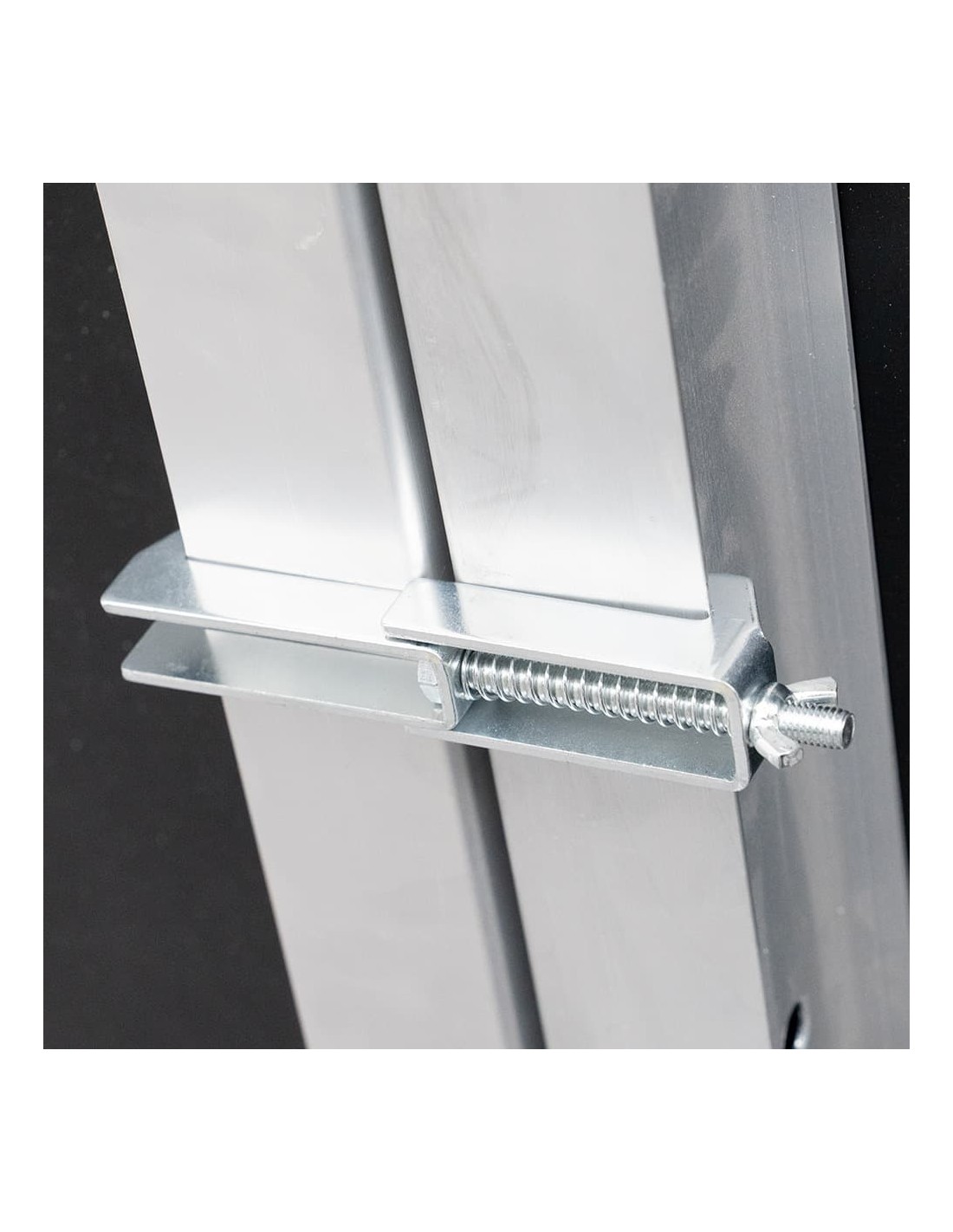 Abraçadeira metálica de cor preta para unir dois módulos de palcos com total segurança e eficiência.